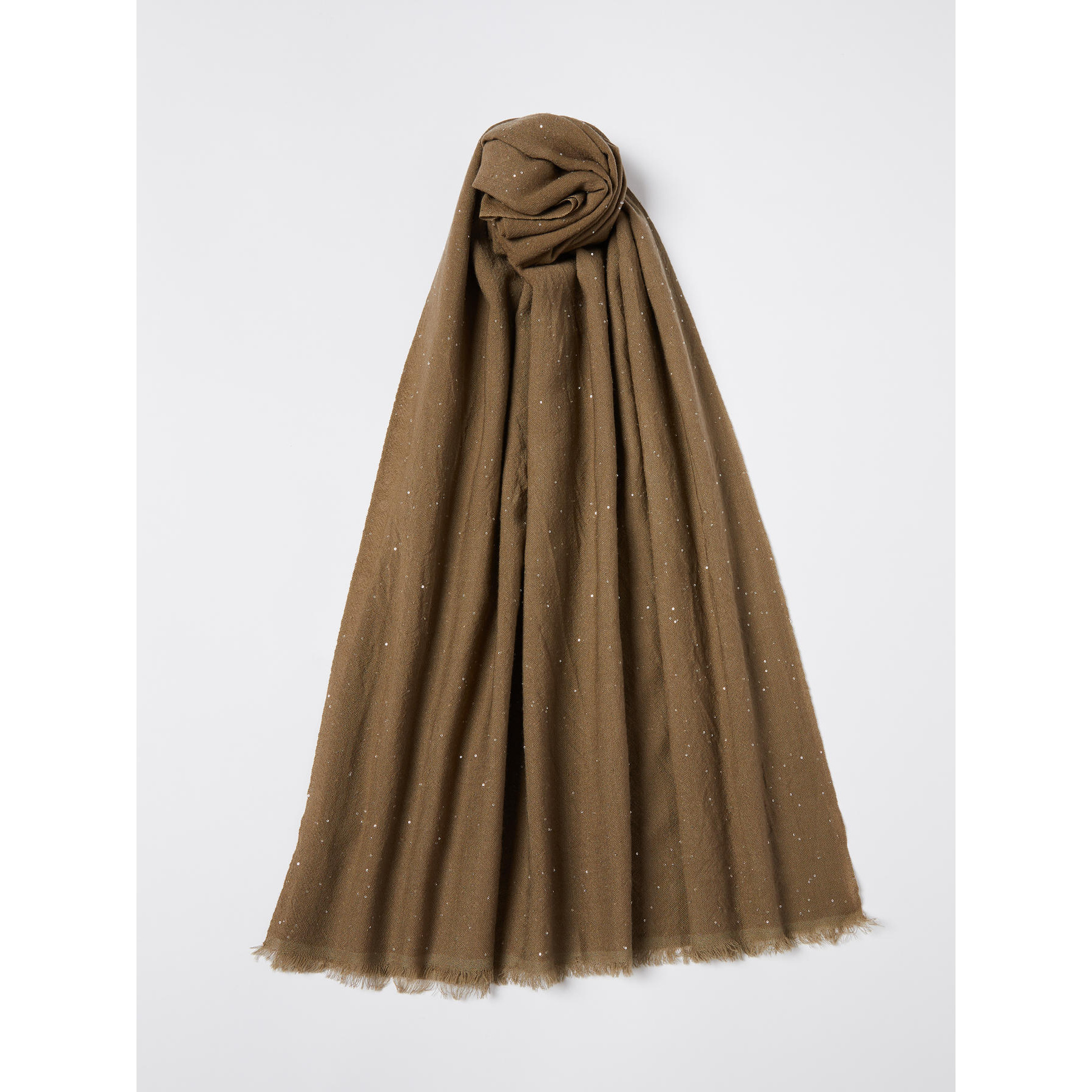 A cascade of stars, to wear day and night: new wool stole with micro sequins. Sparkling in the sun, paired with blazers and everyday sweaters.