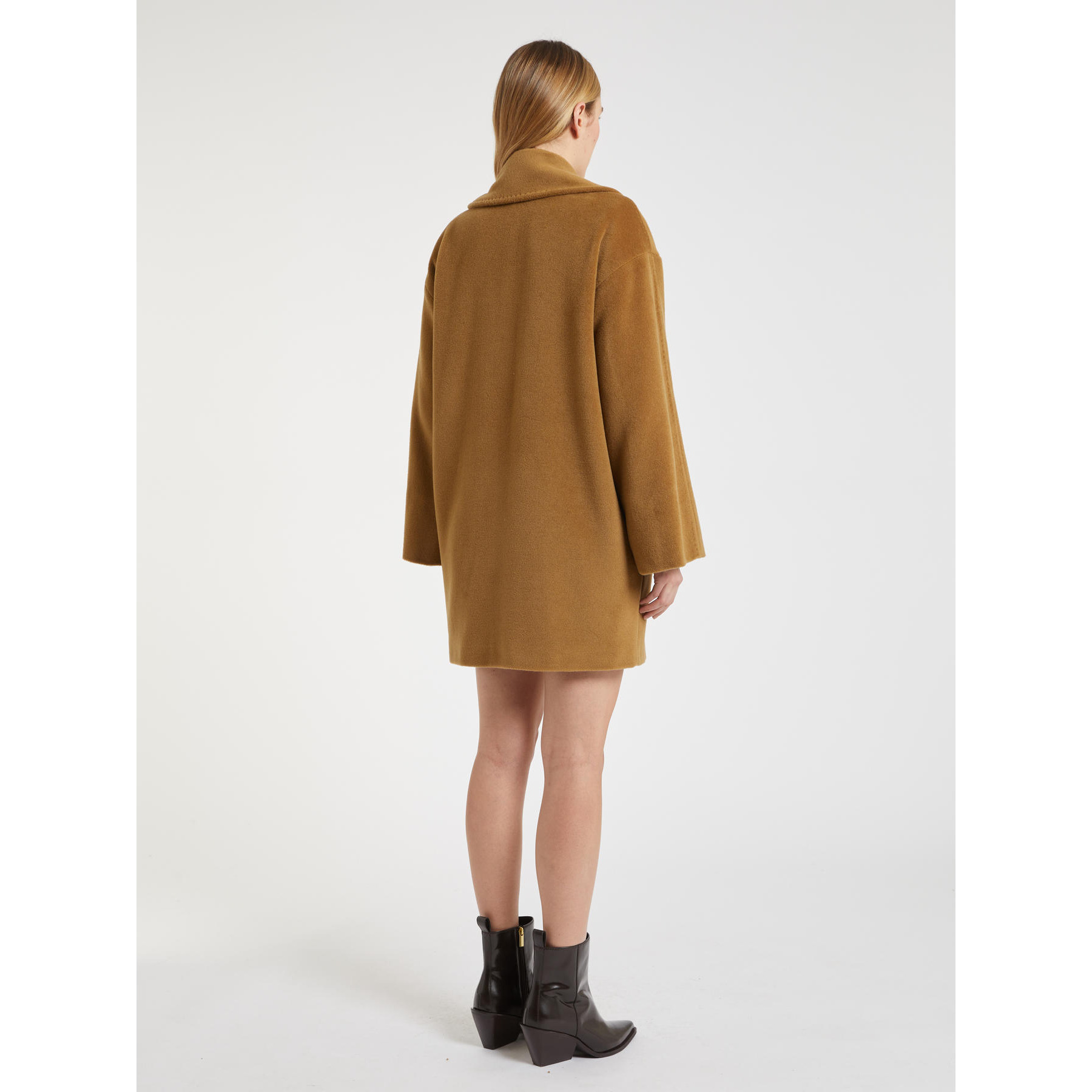 A very wide lapel and a fitted silhouette define this pure wool jacket with a double-breasted closure. Versatile and warm, it can be worn with denim or a blazer and business pants with timeless elegance.