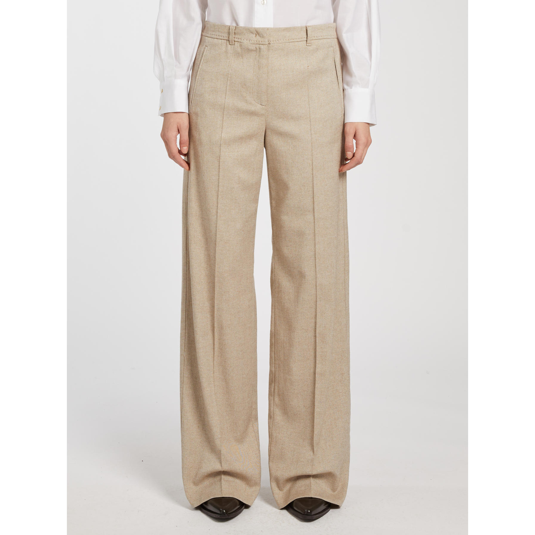 Paired with a matching blazer or a soft sweater, these stretch wool and viscose trousers will complement your everyday looks. The small, masculine details and back darts add a touch of originality.