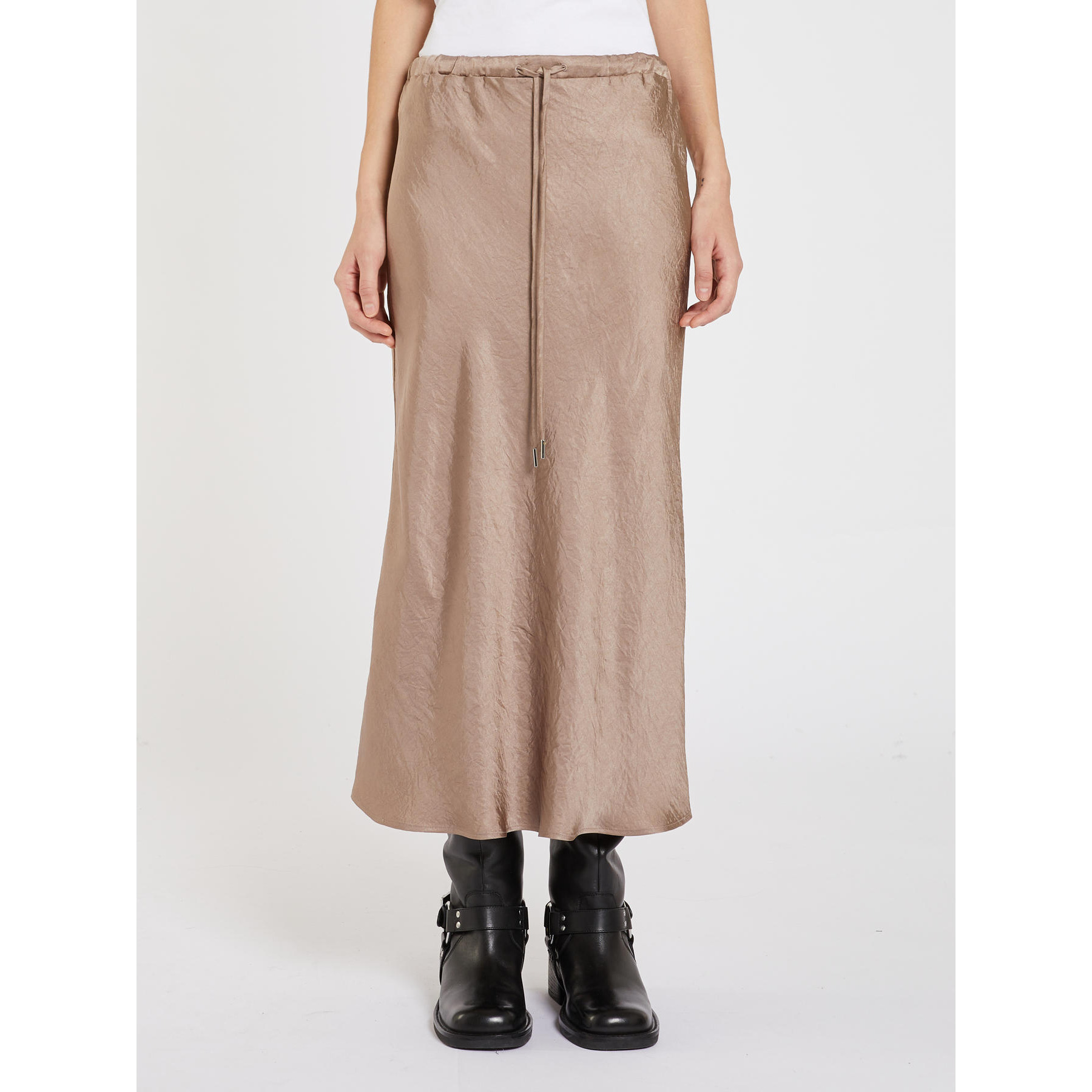Crinkle-finish twill pencil skirt with a slightly flared hem for a femininity that's ready to be reinvented: elegant with light tops, urban with tank tops and boots.