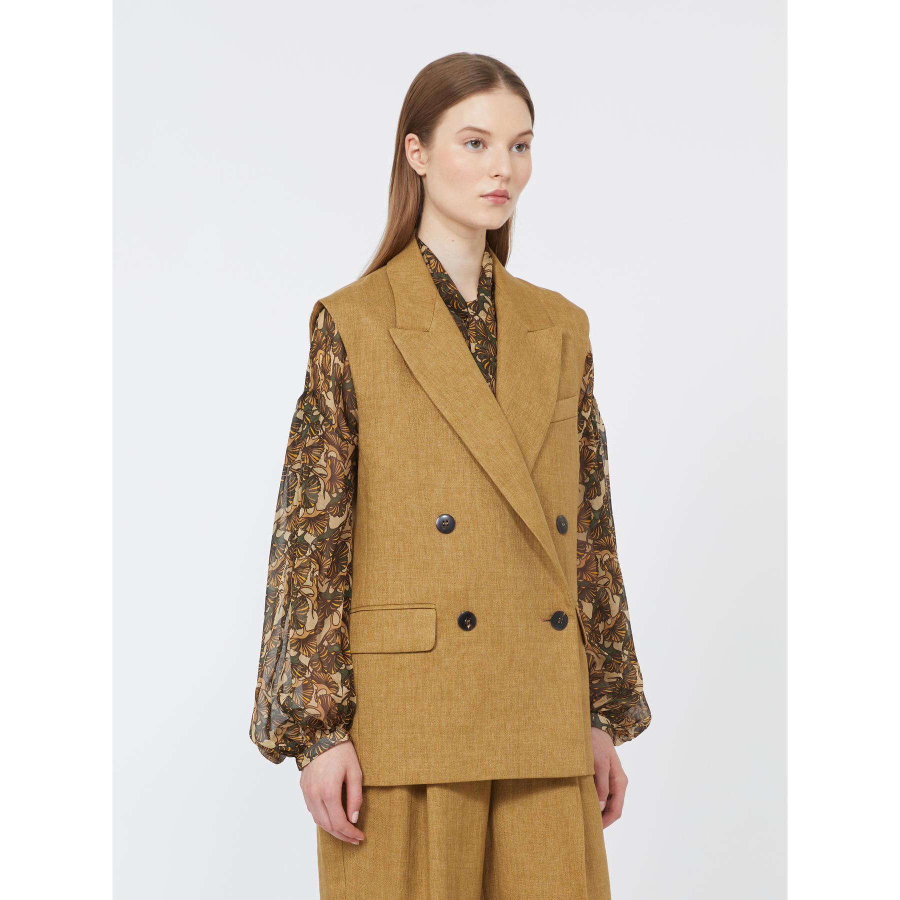 Tailor-inspired double-breasted vest.