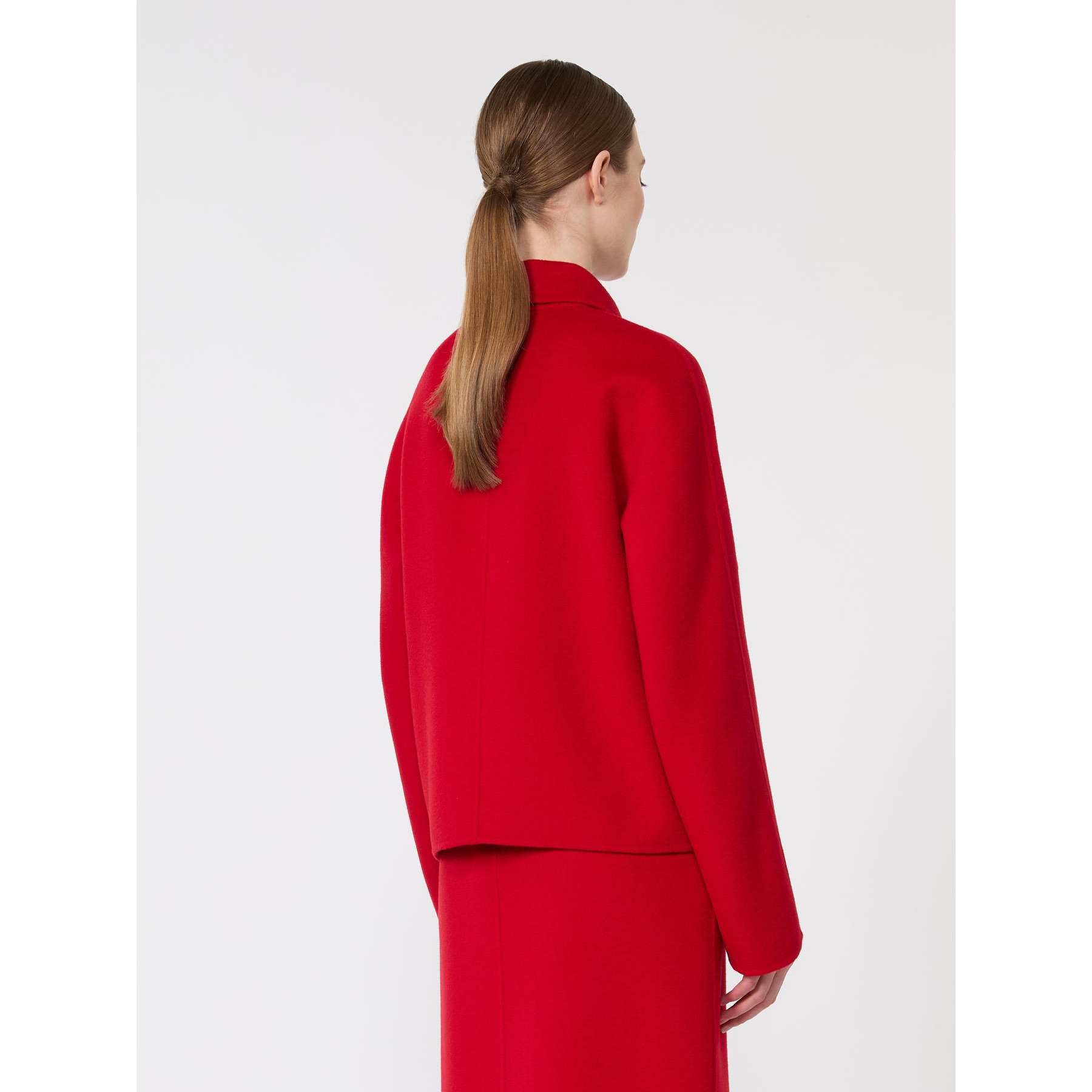 Double-drap wool, cashmere, and silk jacket