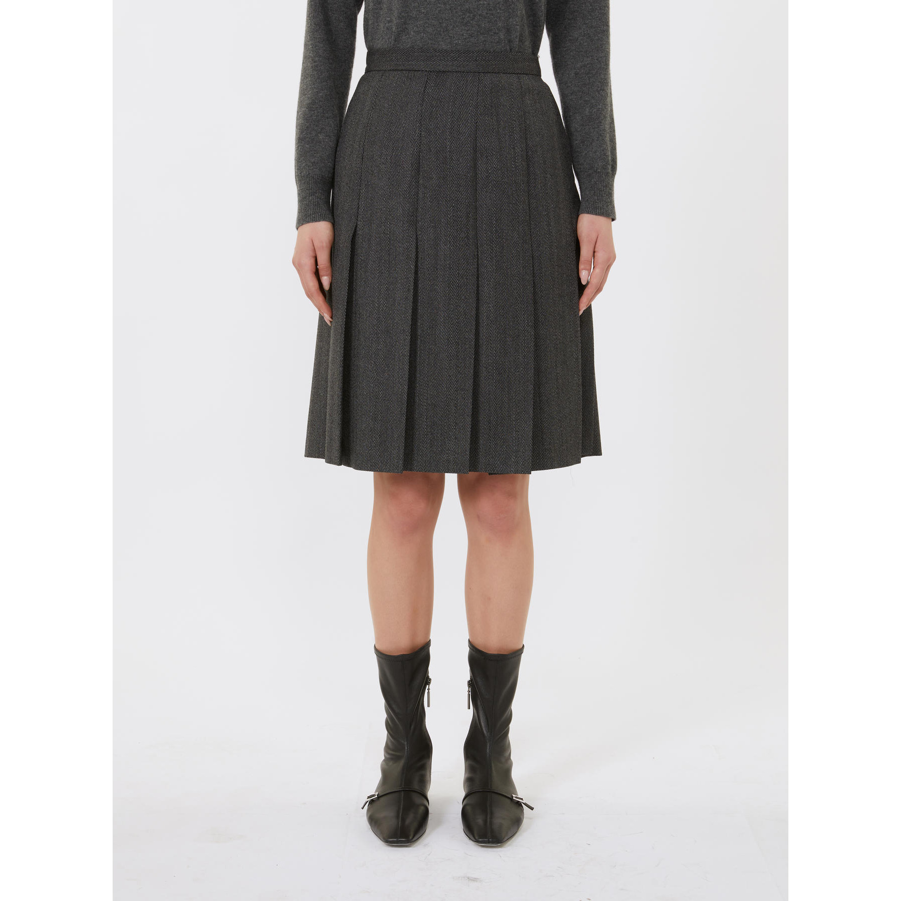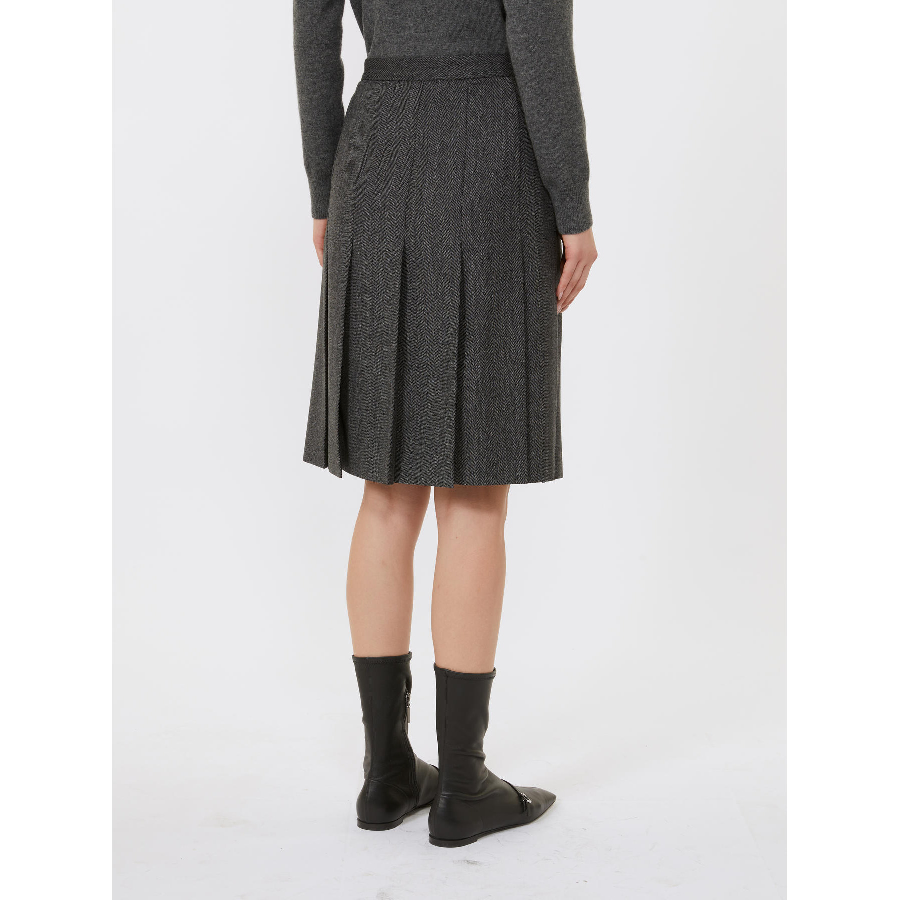 Short skirt with semi-stitched pleats that give structured movement to the garment. Made of flannel with a slightly flared silhouette and essential construction. Stretch wool flannel skirt Semi-fitted fit with slightly flared line Regular waist with fabric profile Side zip closure Unlined