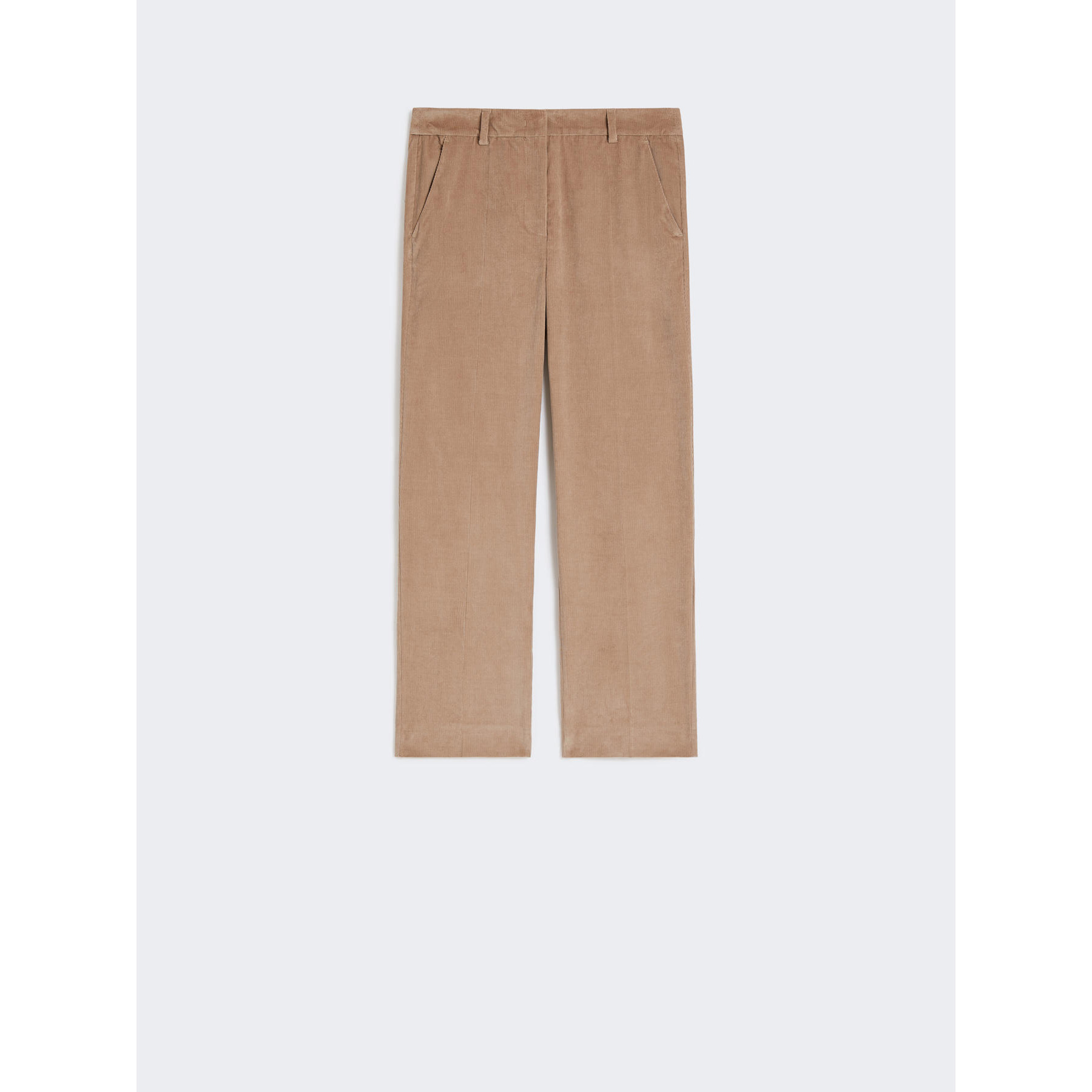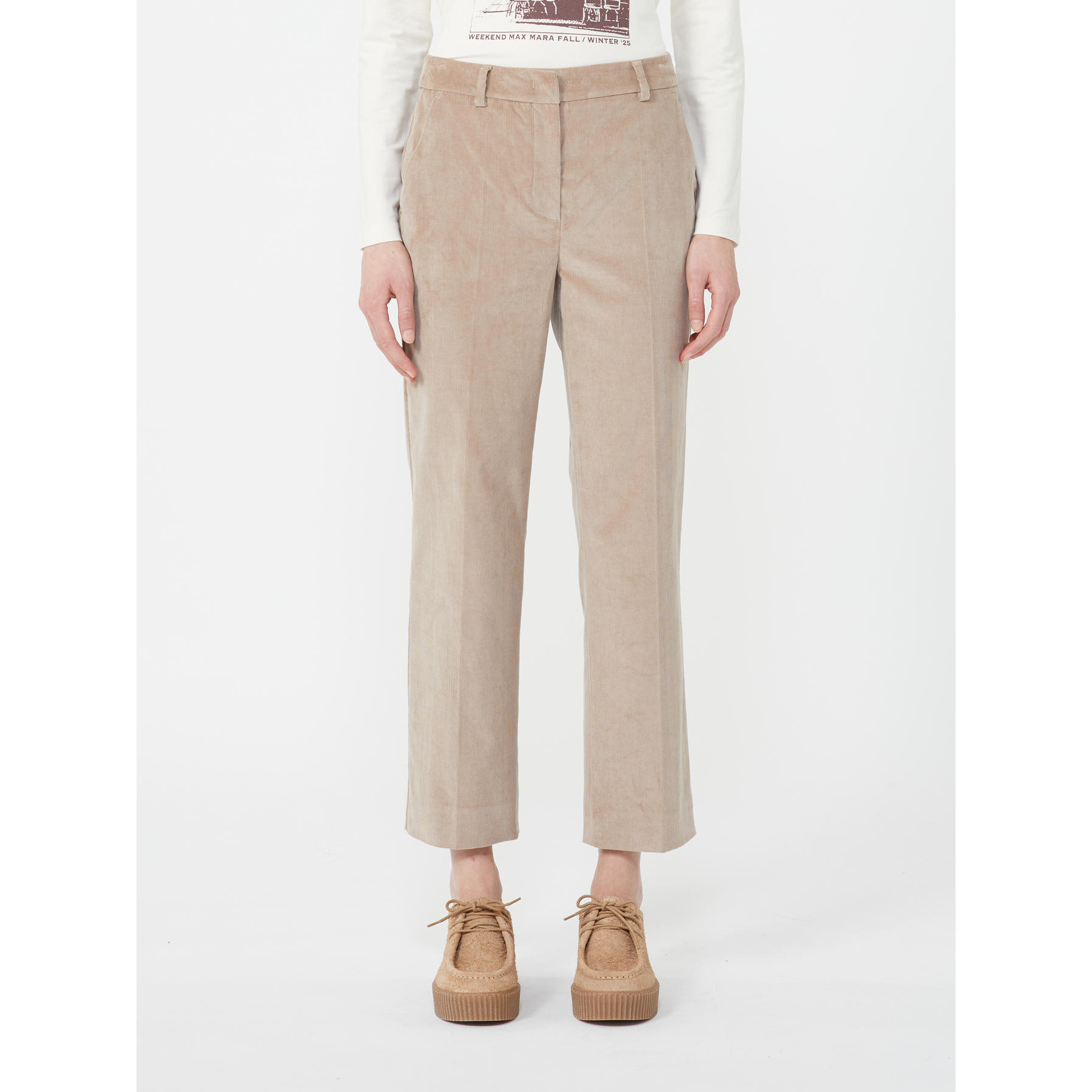 Ribbed trousers featuring a slim silhouette with cropped cut at the ankle.