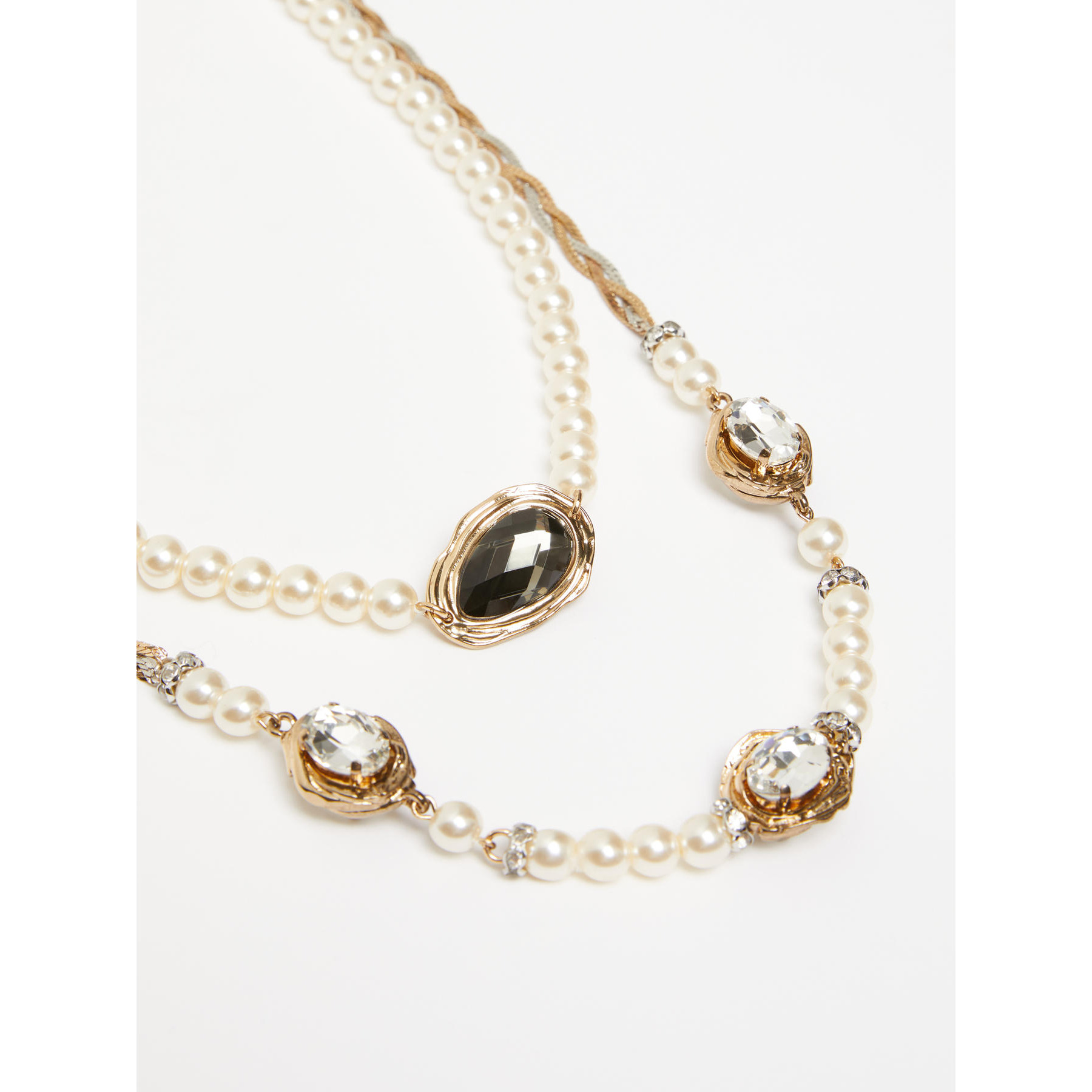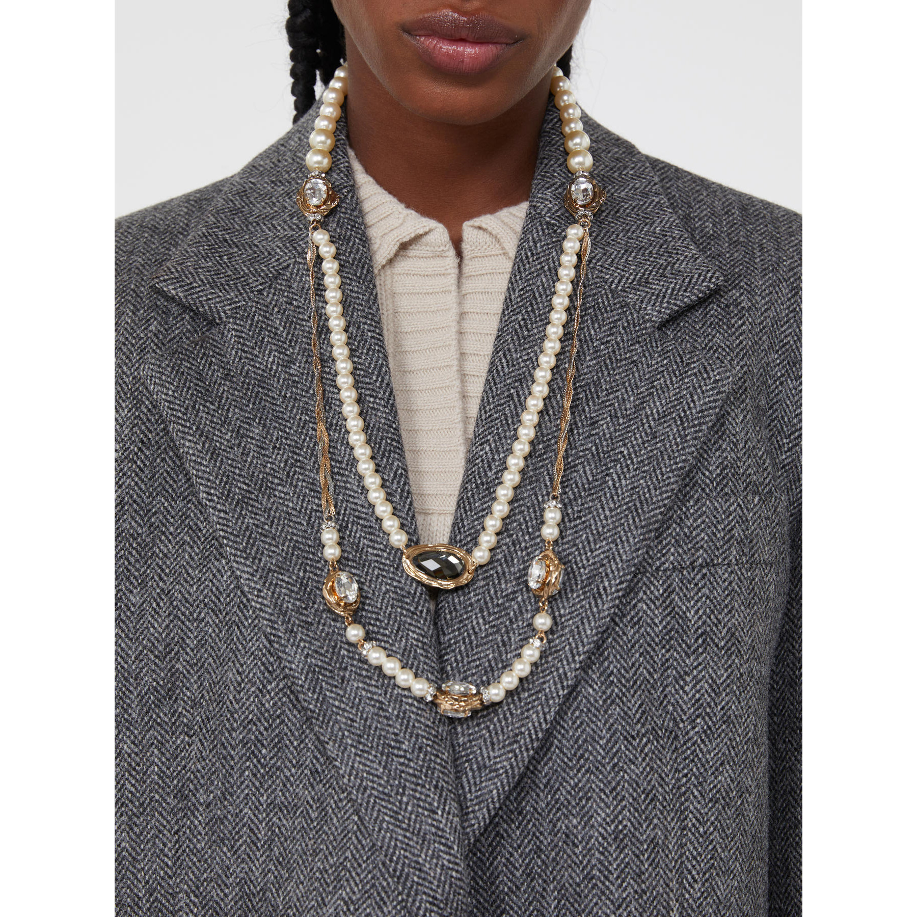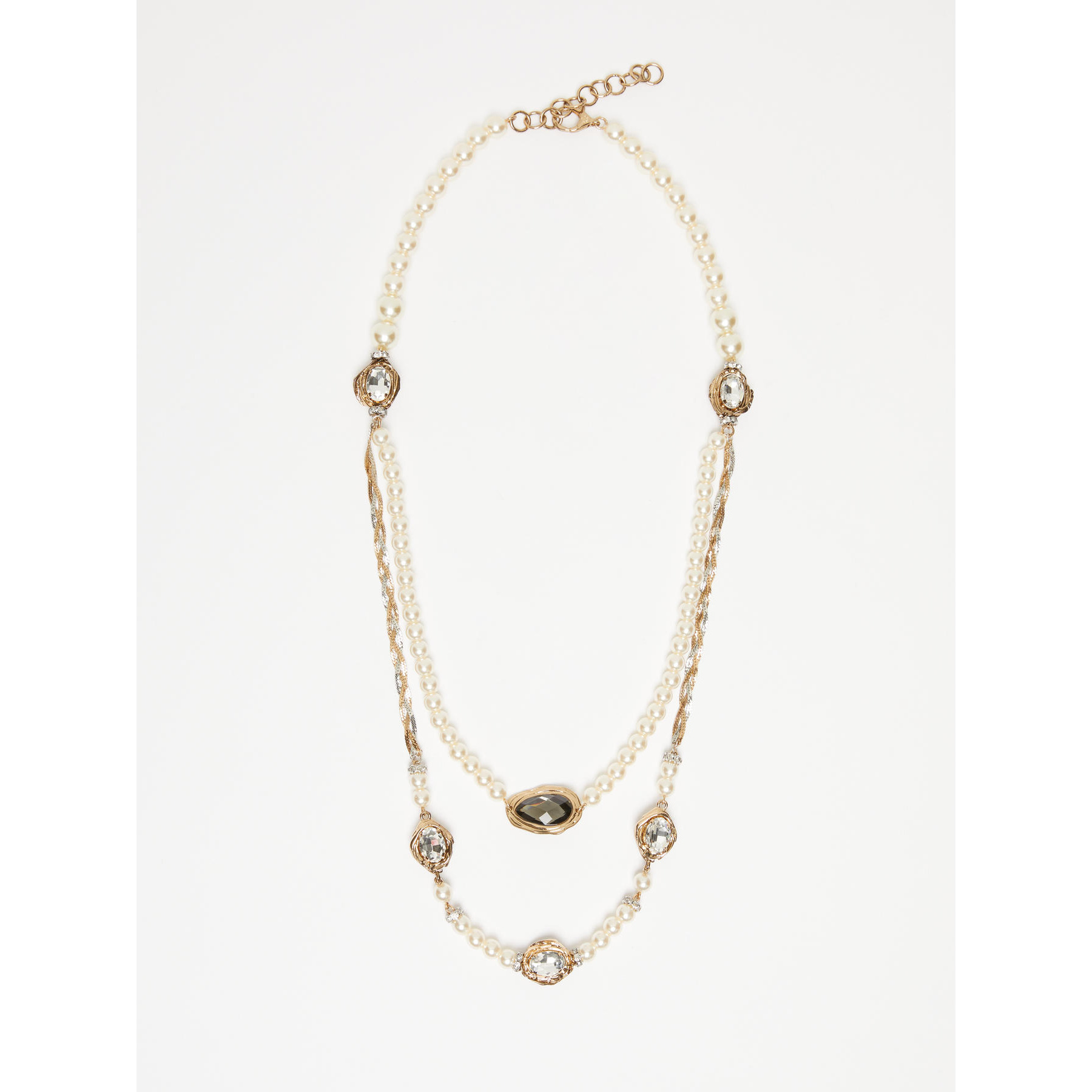 Double strand necklace, composed of pearls with metal elements and set with faceted crystals.