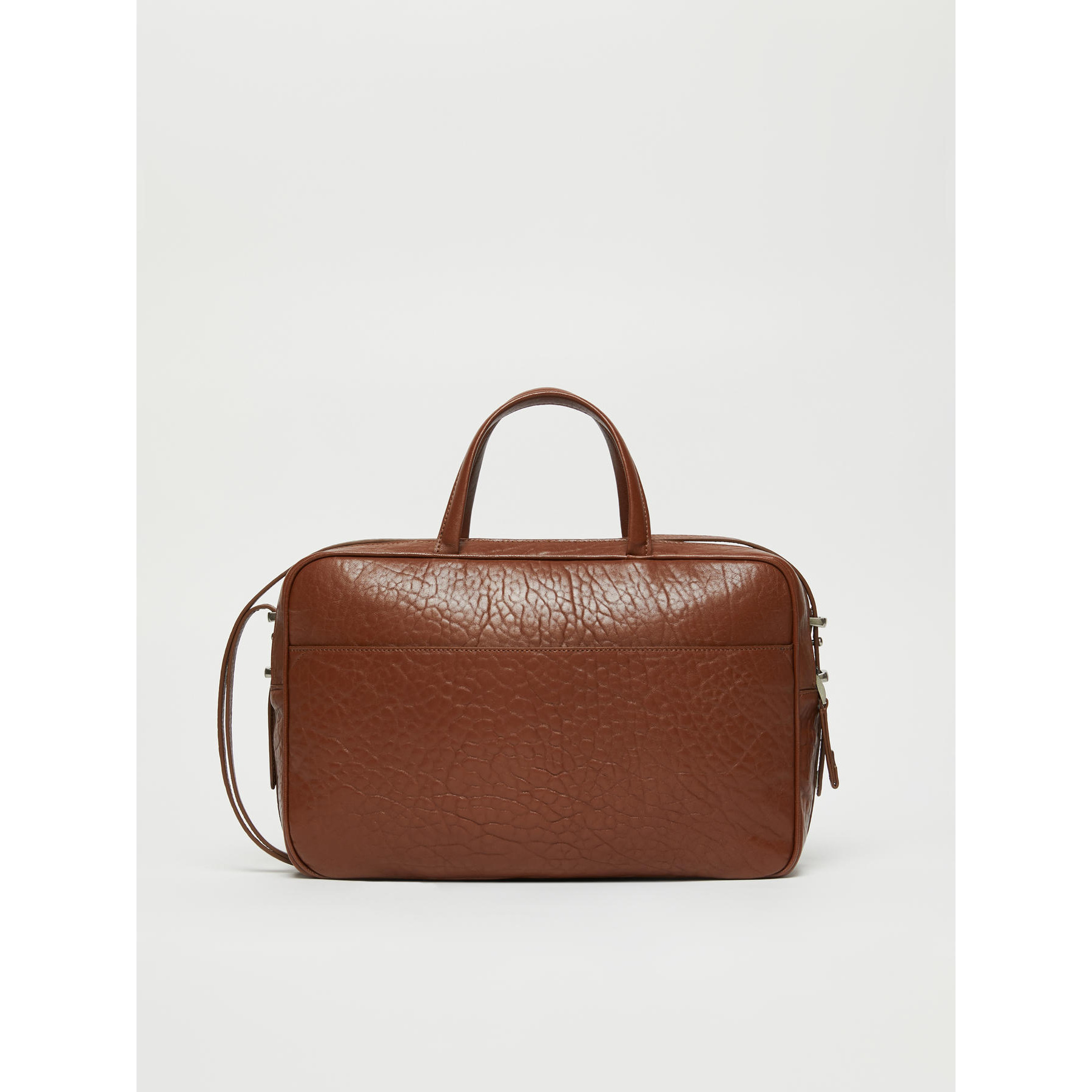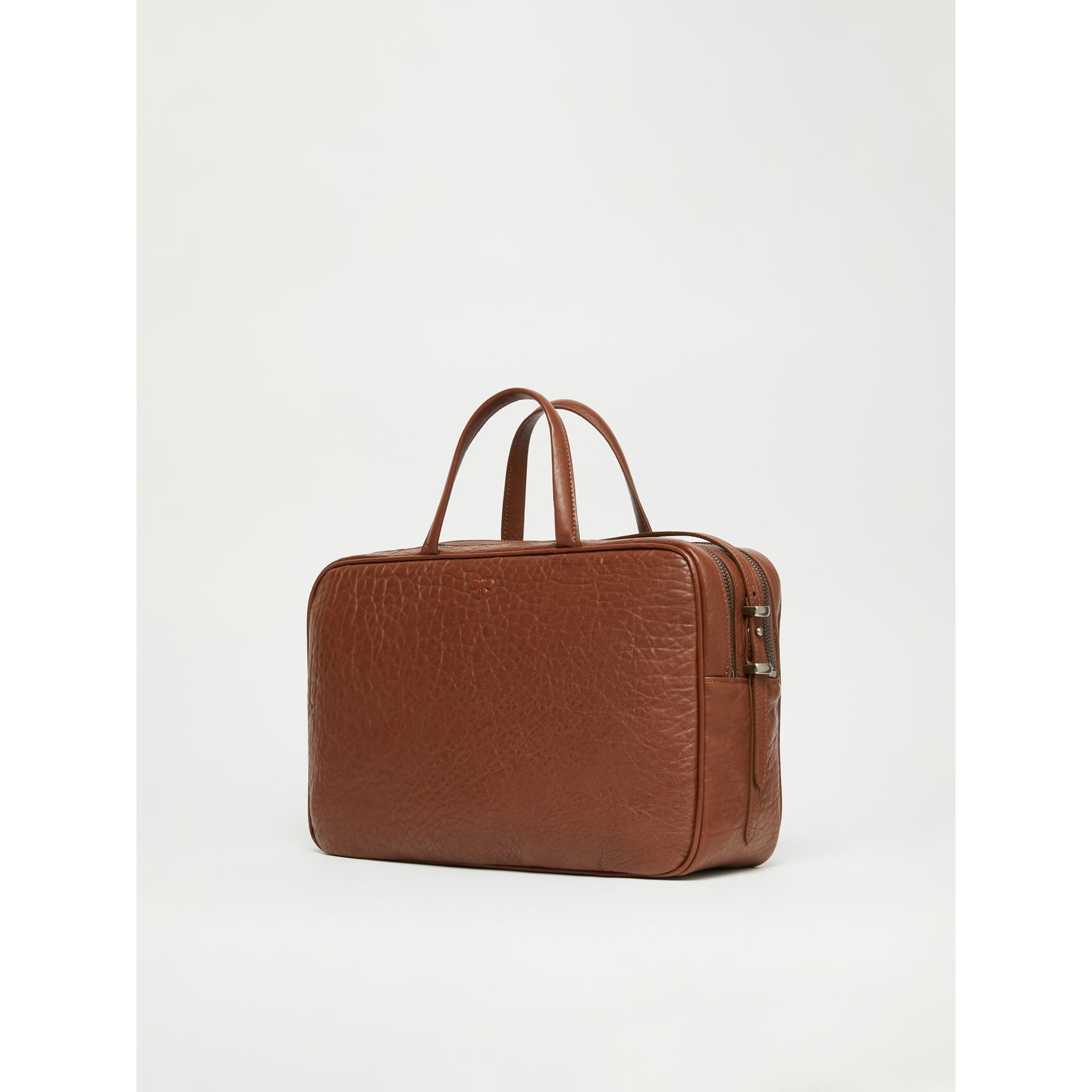 Handbag featuring a rectangular design with two compartments, both closed by zip, and double handle.