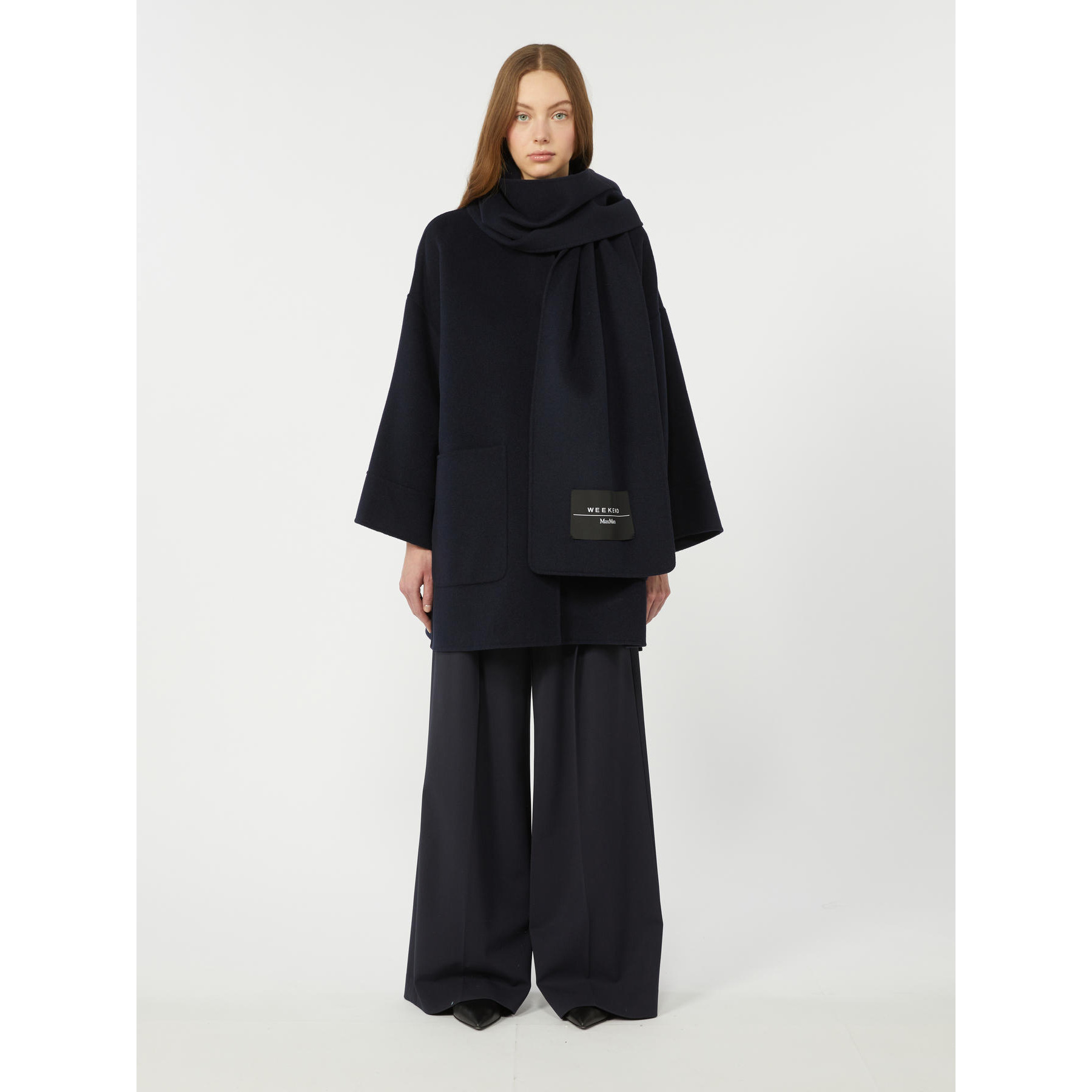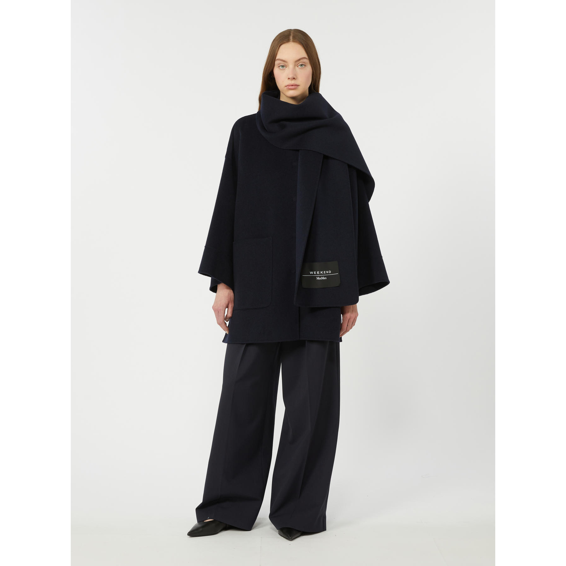 Midi coat featuring a matching removable scarf with a large Weekend Max Mara label.