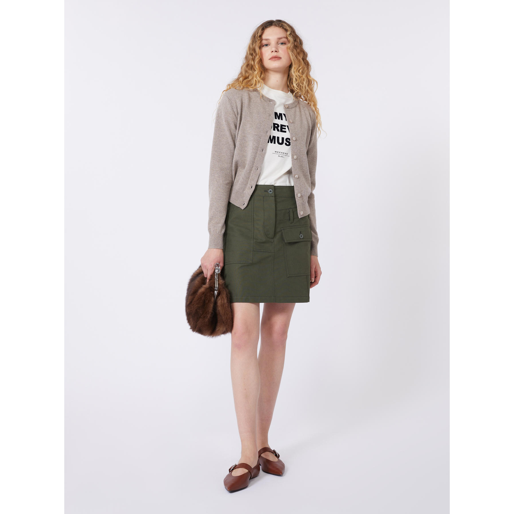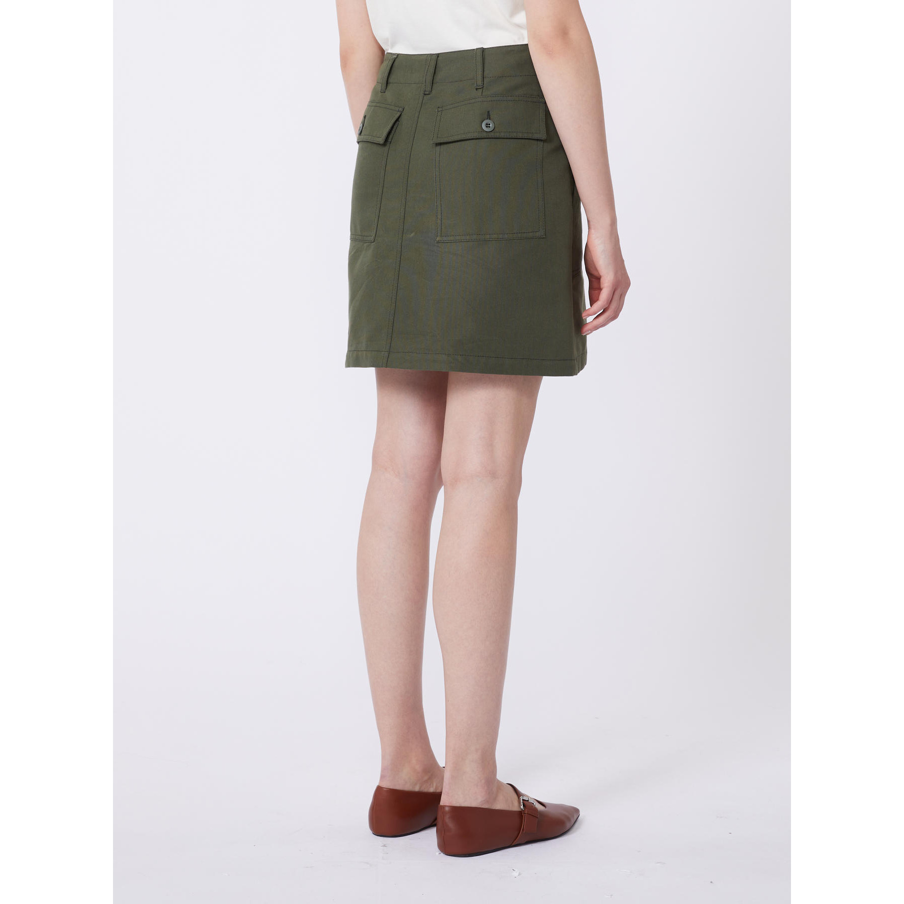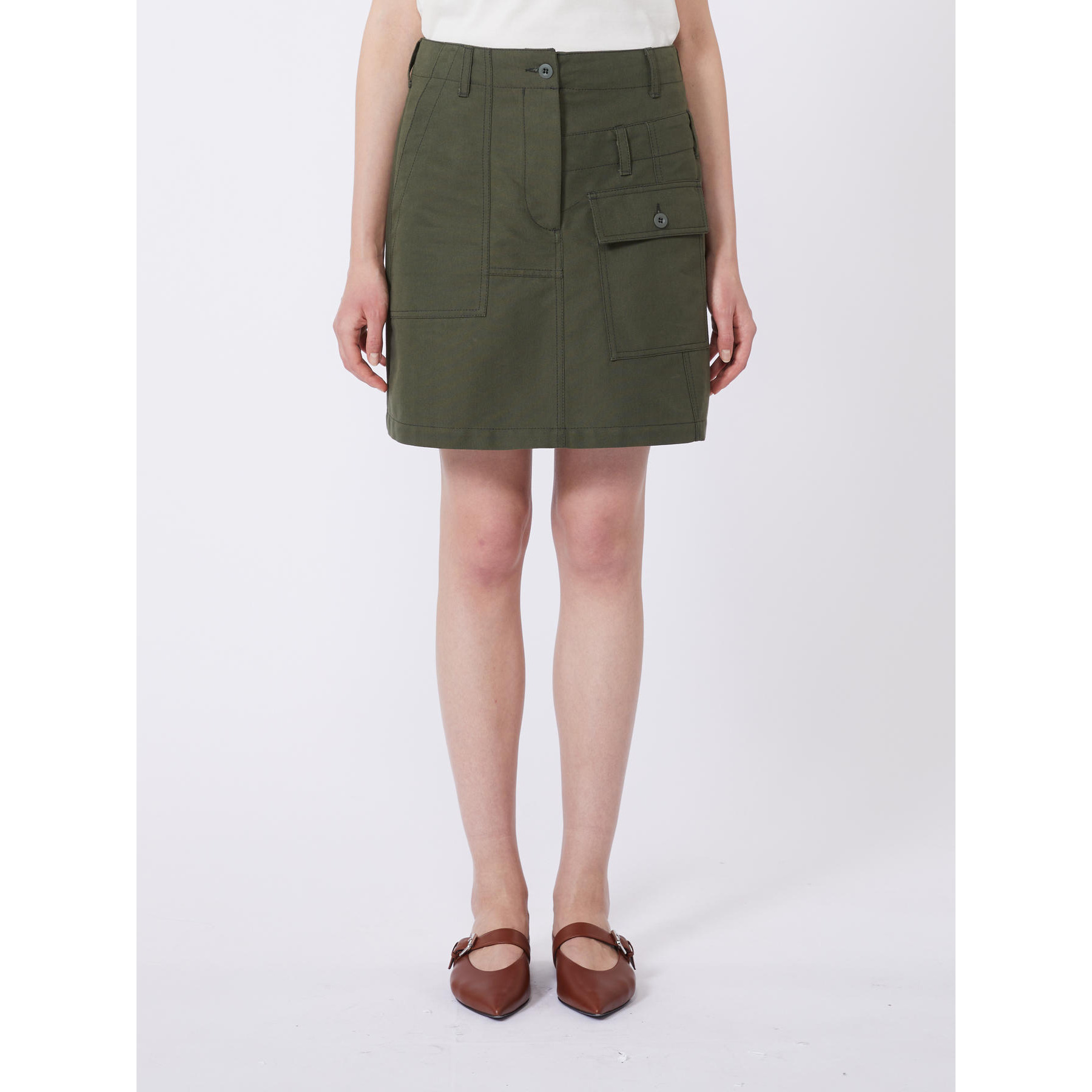 Workwear-inspired miniskirt with a slashed pattern on the front and a waistband on the left side.