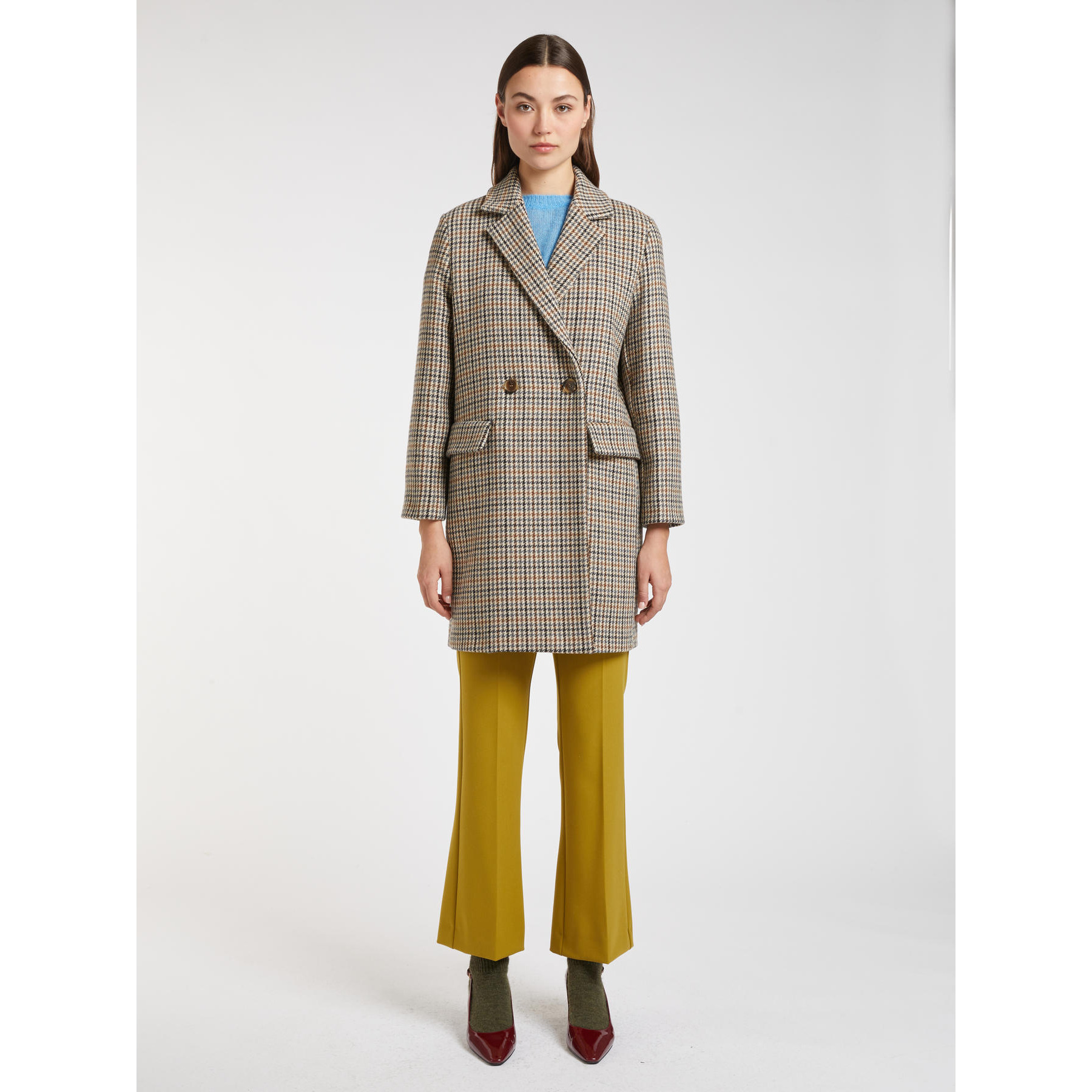 Cappotto doppiopetto midi in doppio tessuto misto lana cucito a mano