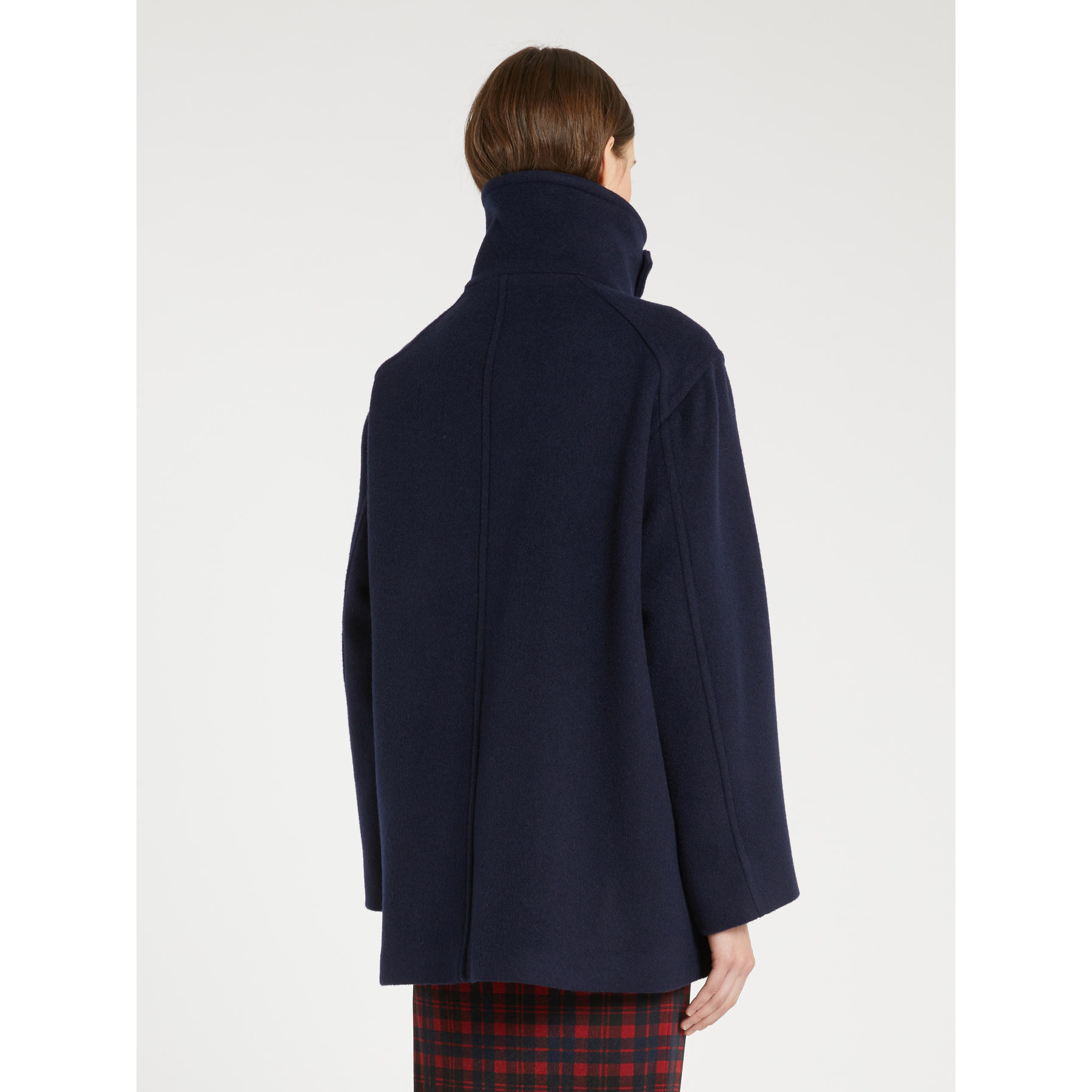 Sportivo nel look, sofisticato nel materiale: nuovo giaccone in morbido beaver double di lana, con taglio raglan che ricorda gli over più sportivi.