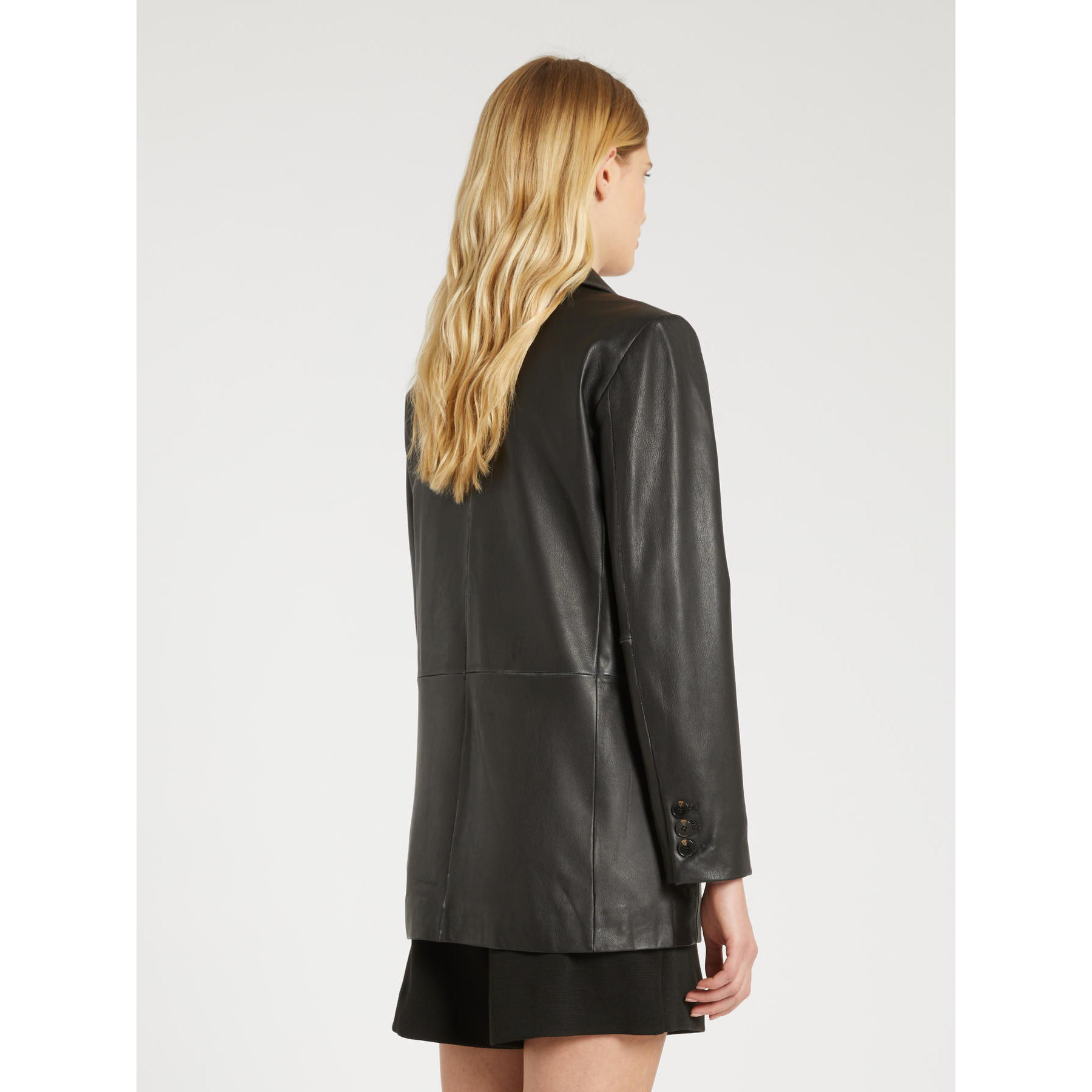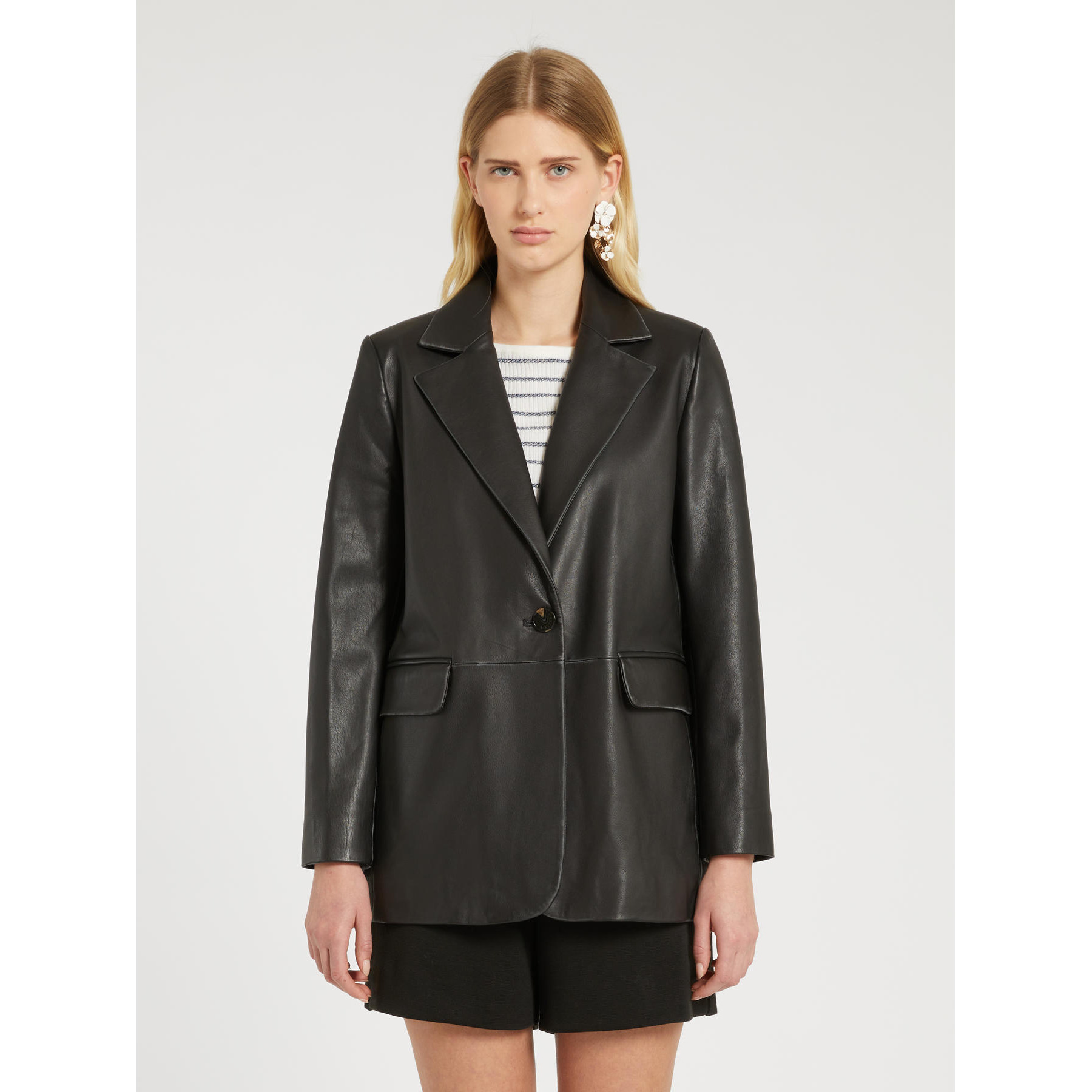 Il più urbano dei materiali, nel più raffinato dei tagli: nuovo blazer in pelle effetto vintage, con rever lungo lo scollo e chiusura con bottone. Provalo su un abito stampato o a contrasto con denim e top lingerie, il risultato sarà sorprendente.