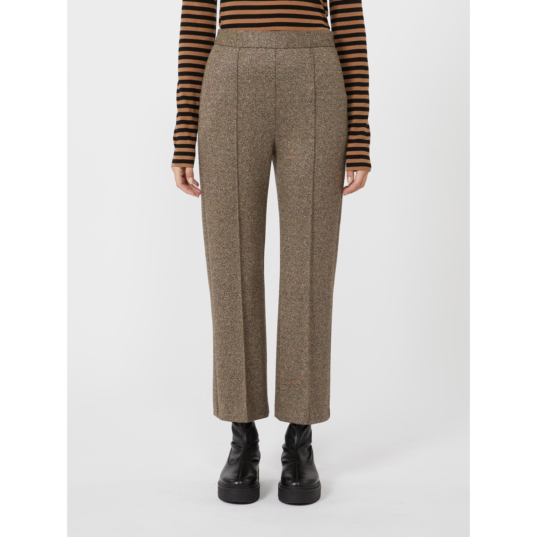 Pantalone flare con taglio cropped alla caviglia.