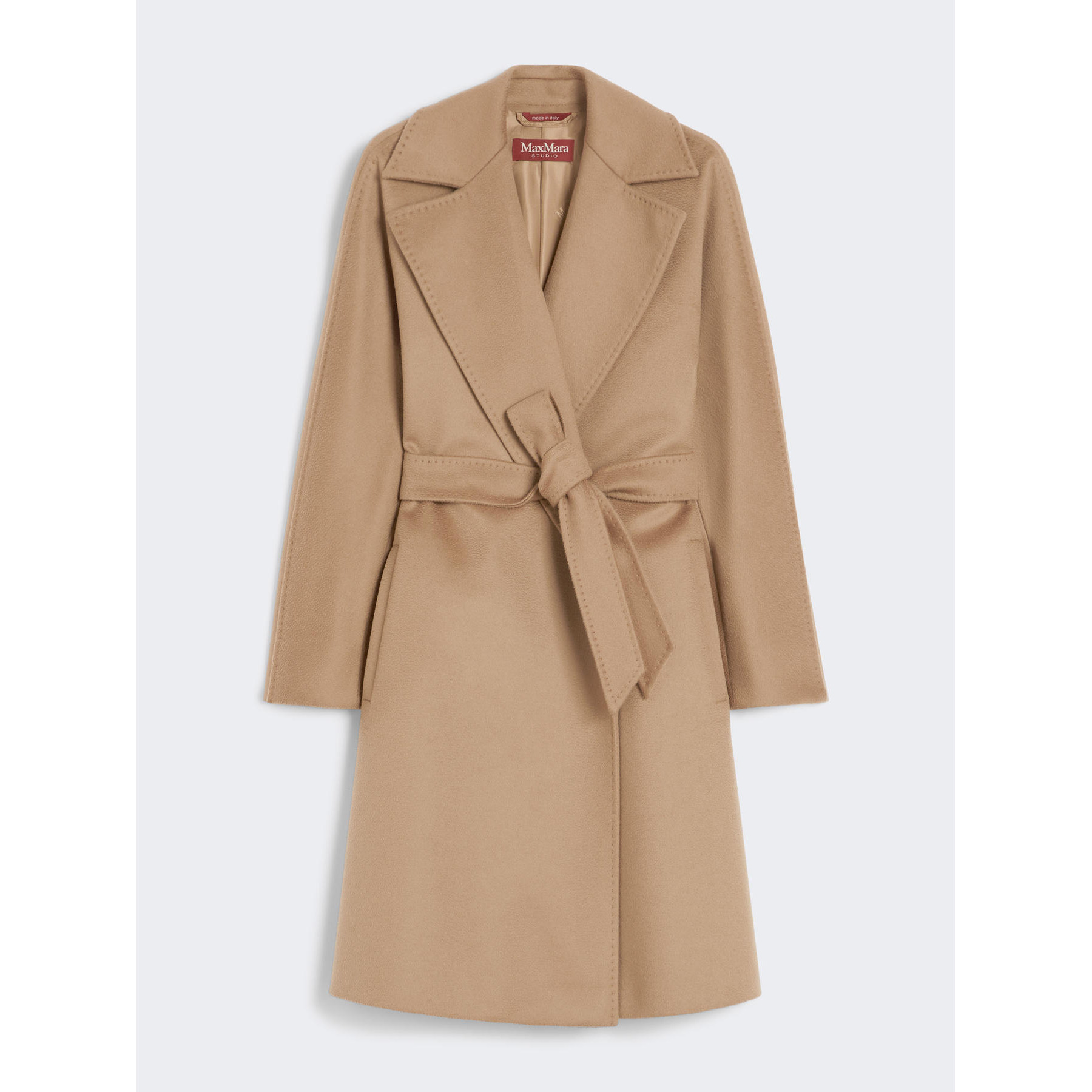 Cappotto midi a vestaglia, rifinito con puntino sartoriale.