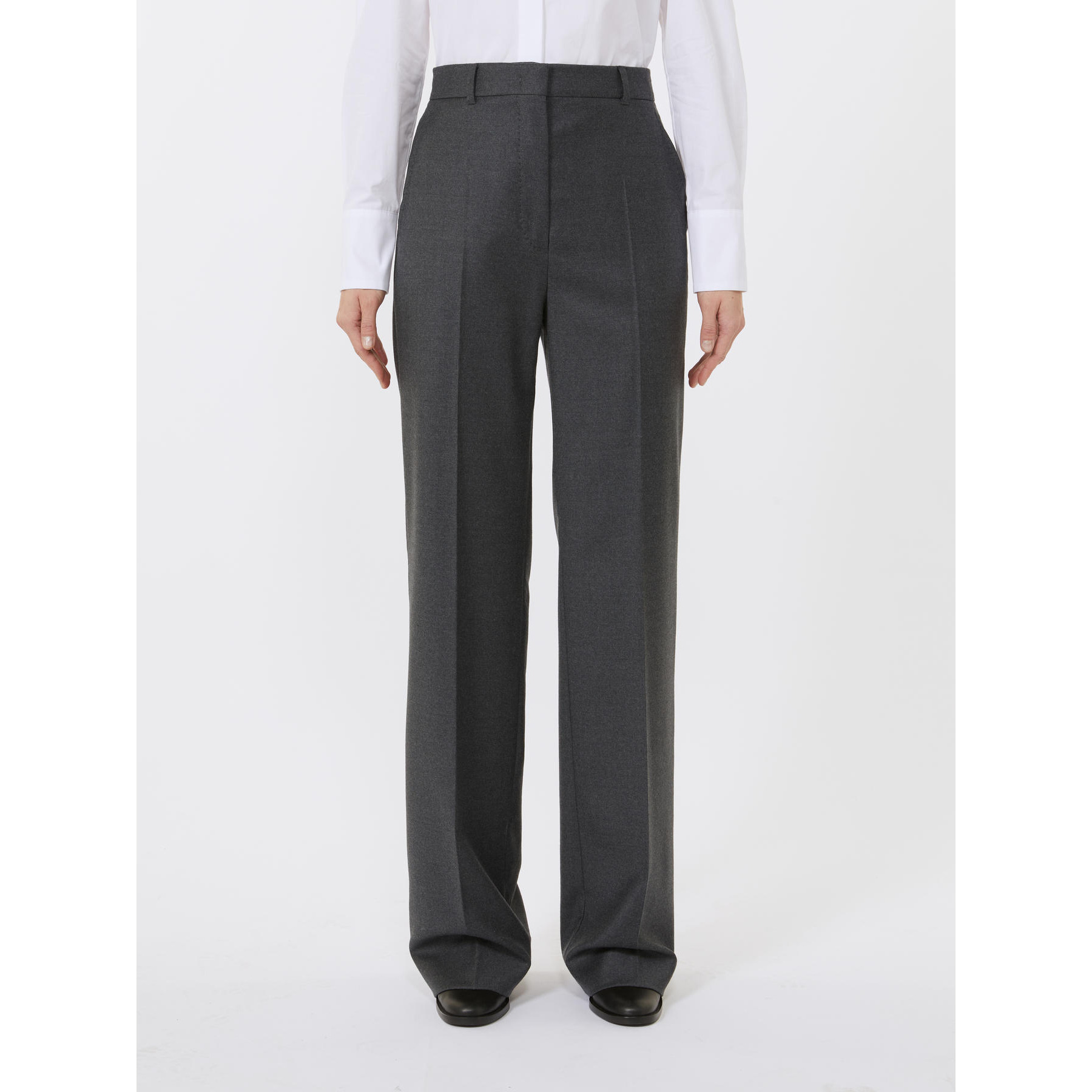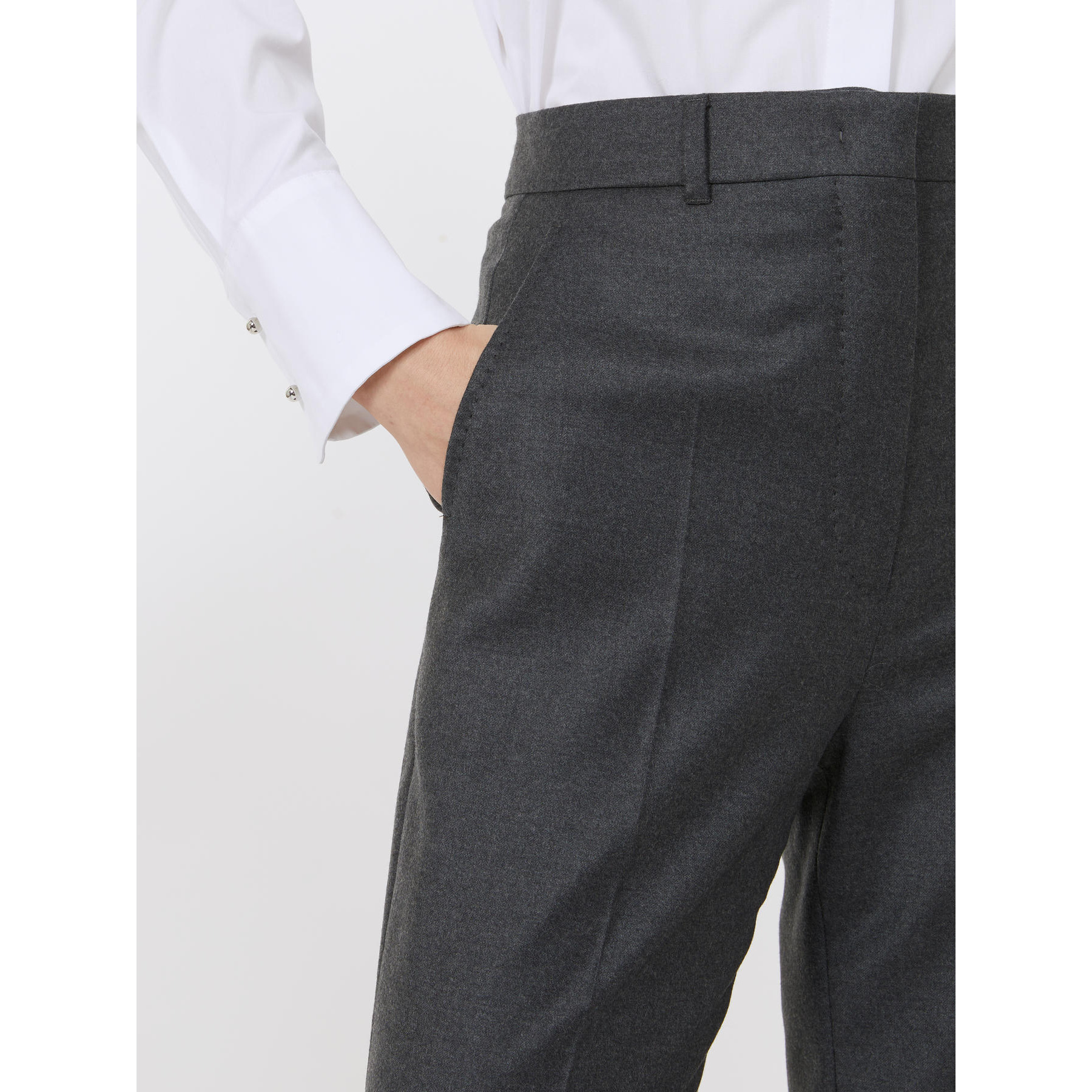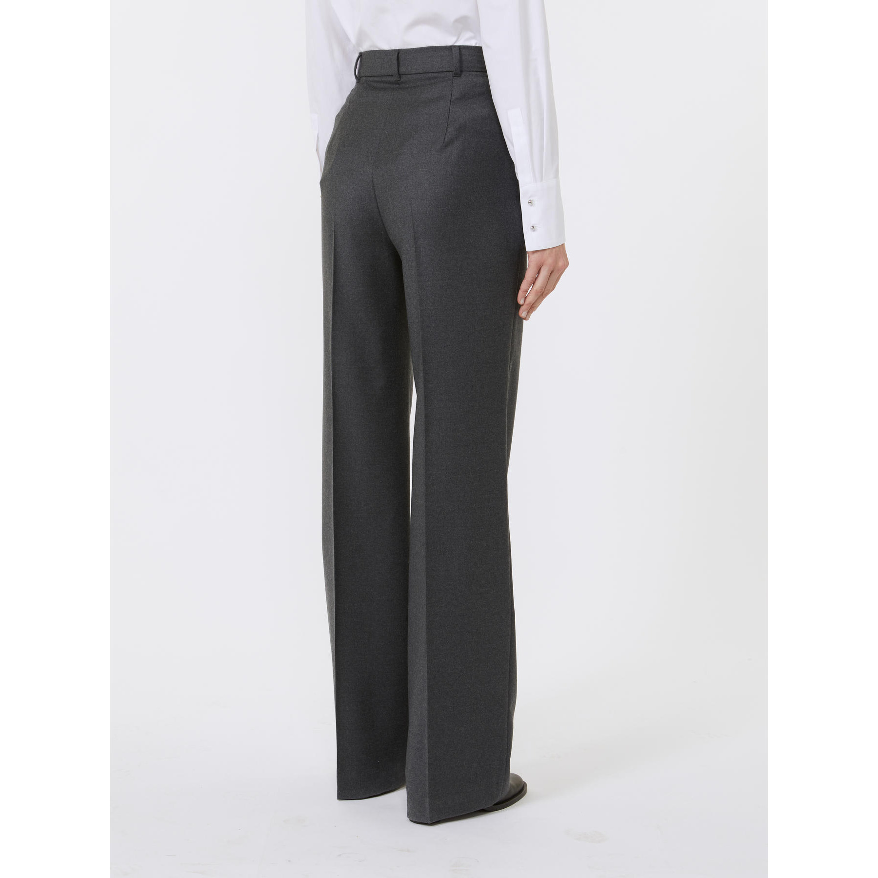 Pantalone caratterizzato da uno stile sartoriale maschile, preciso e lineare. La flanella di lana garantisce struttura, mentre la silhouette dritta offre una vestibilità classica e versatile. Pantalone in flanella di lana stretch Vestibilità regular fit con silhouette dritta Chiusura con listino alto in vita, zip con patta e gancetto Tasche alla francese sui fianchi Piega stirata sul davanti Passanti per cintura in vita