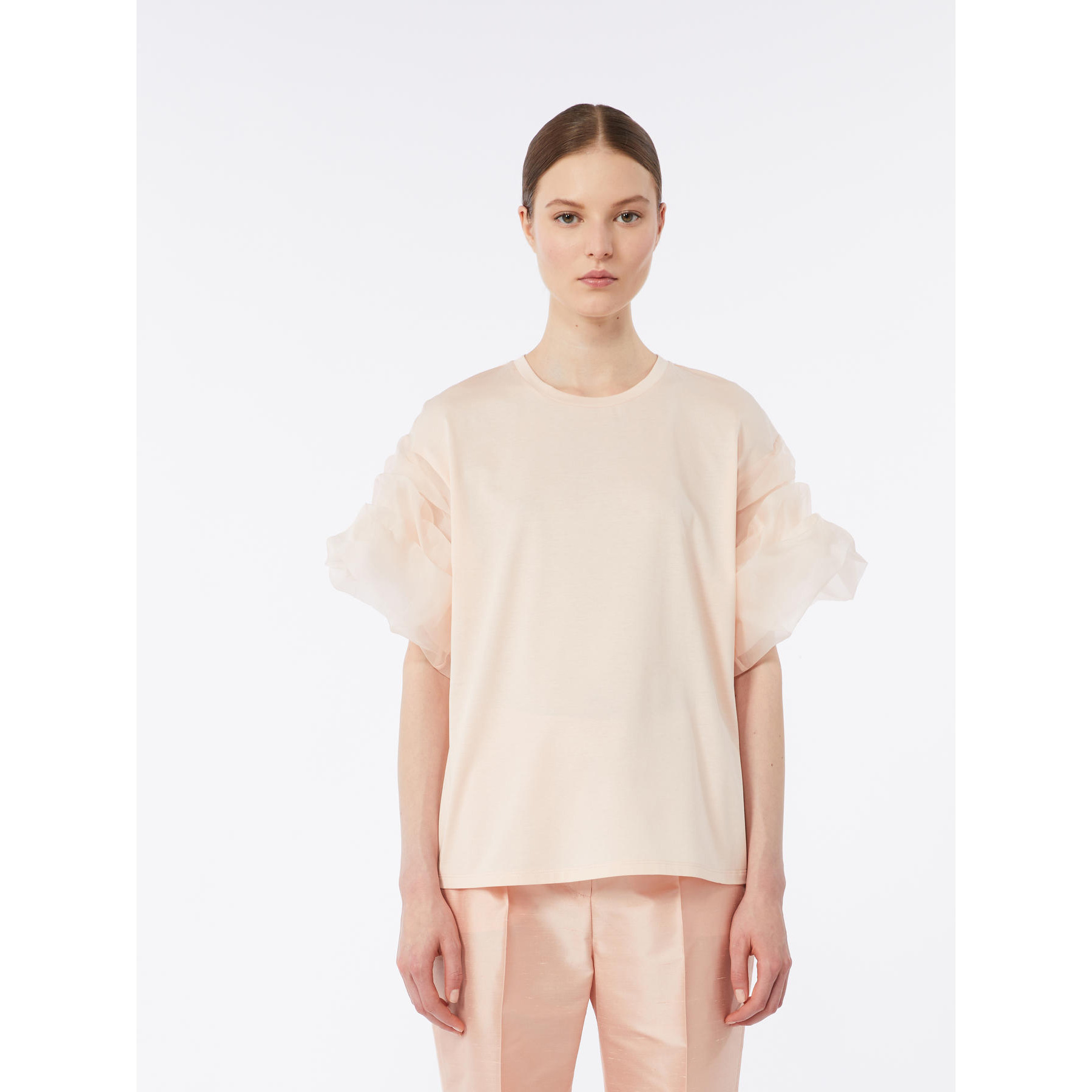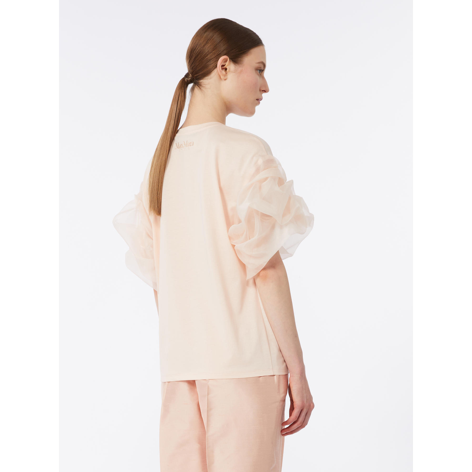 T-shirt couture con maniche corte effetto "nuvola" in pregiata organza di seta.