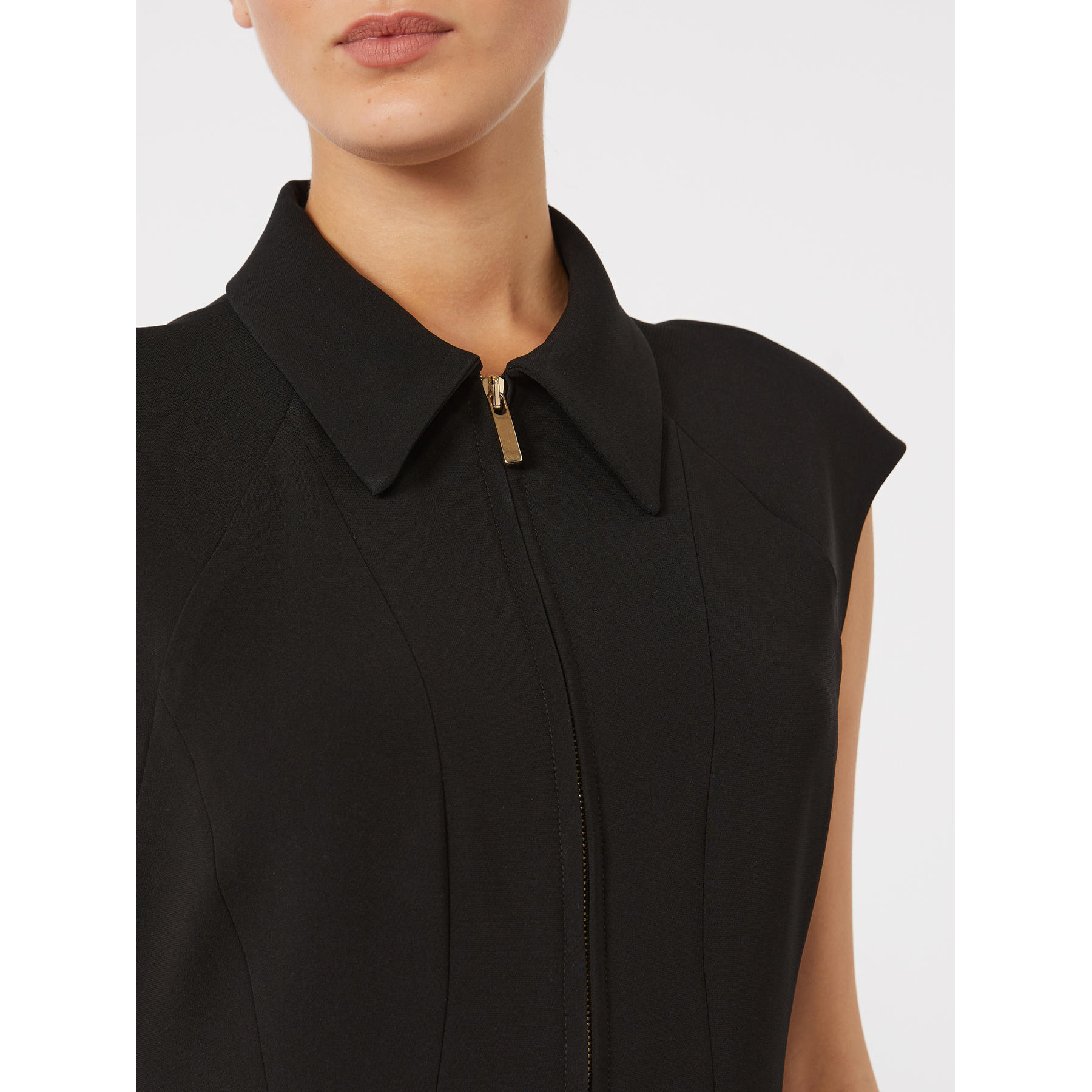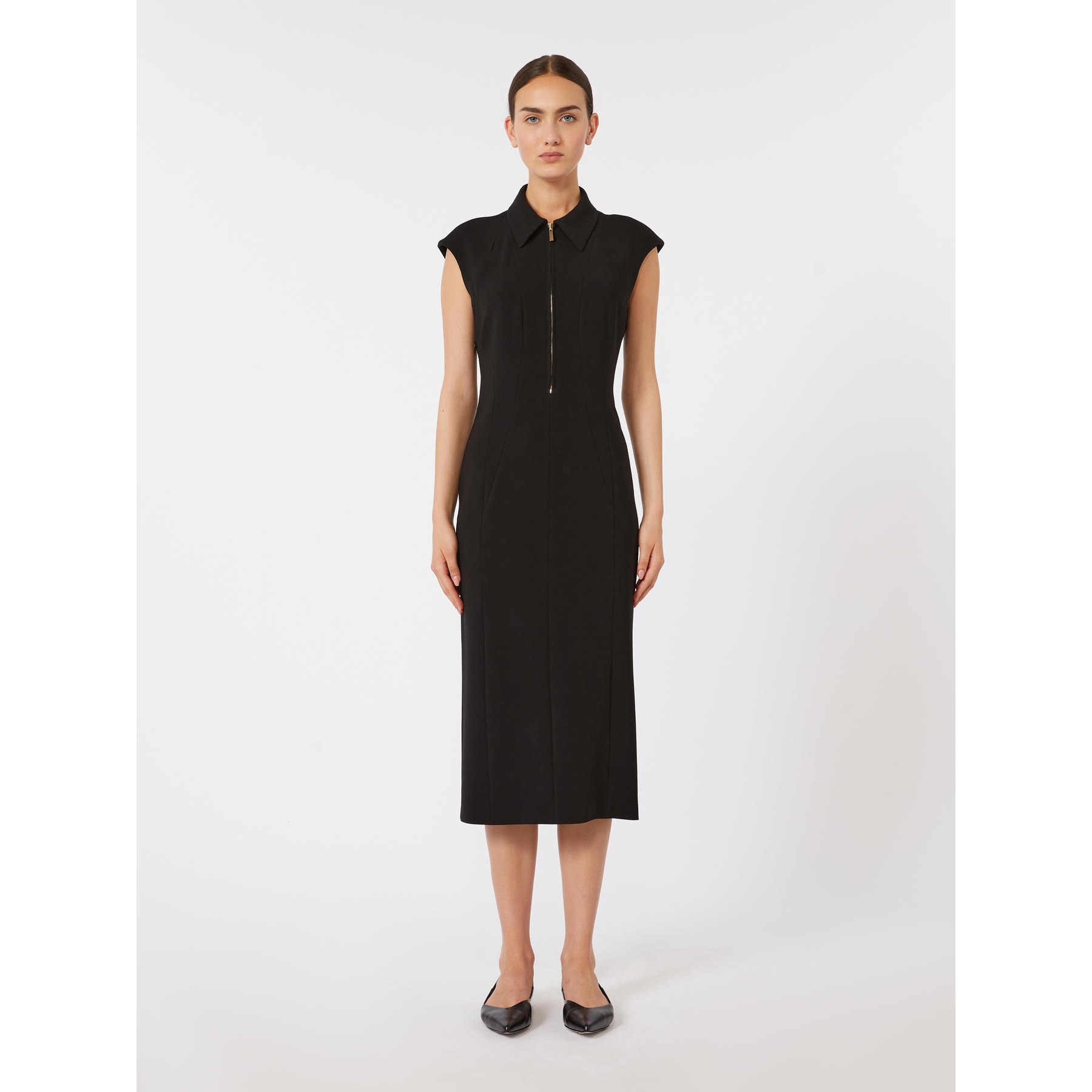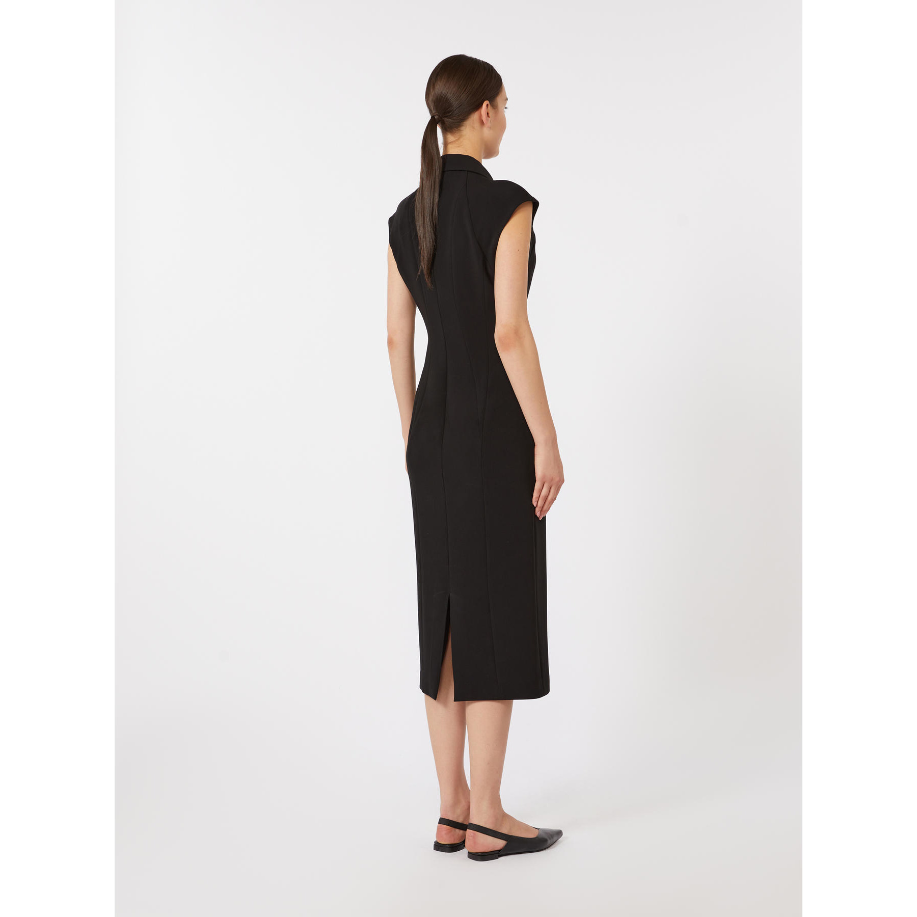 Abito midi a tubino, caratterizzato da motivo di tagli verticali e obliqui che evidenziano la silhouette. Abito in cady
