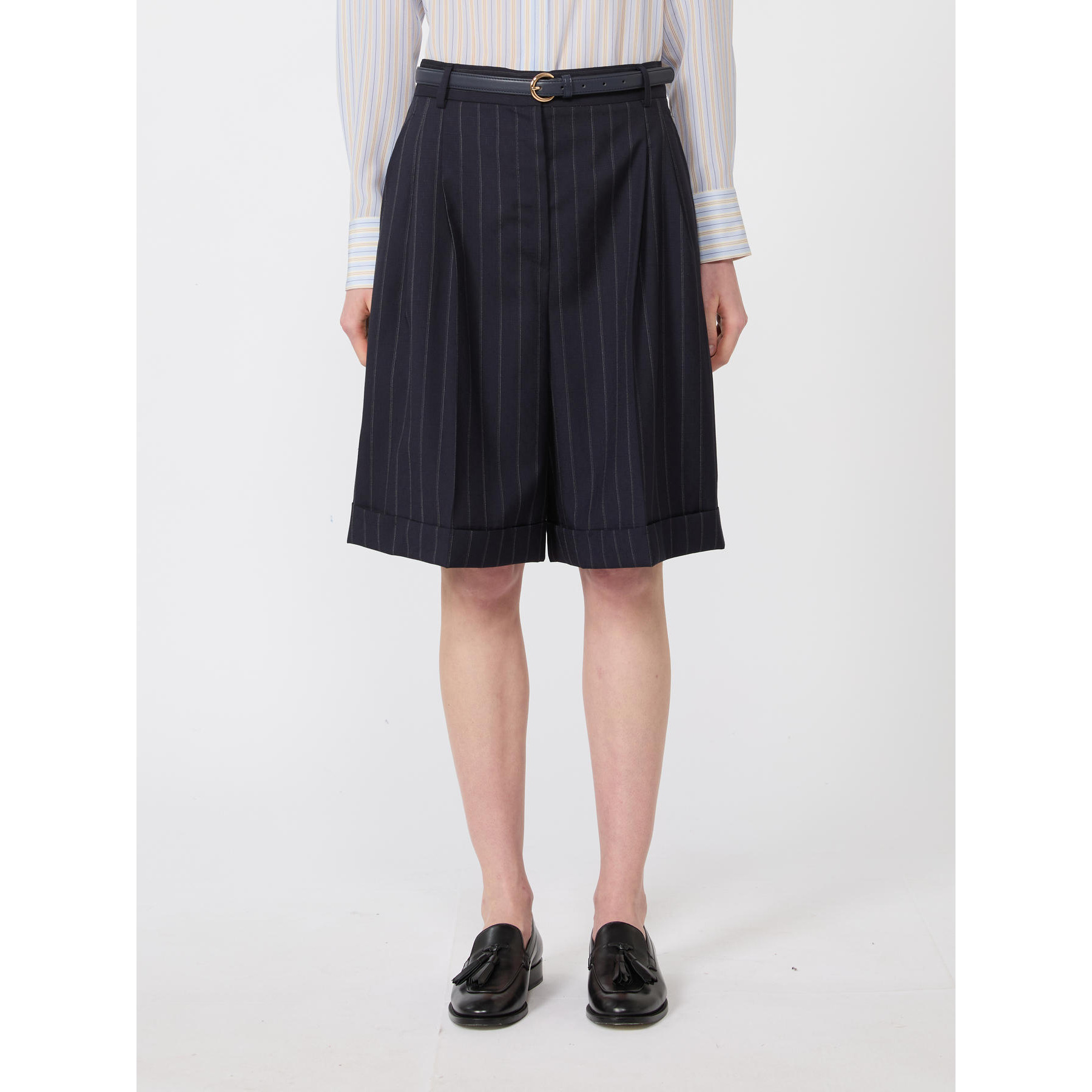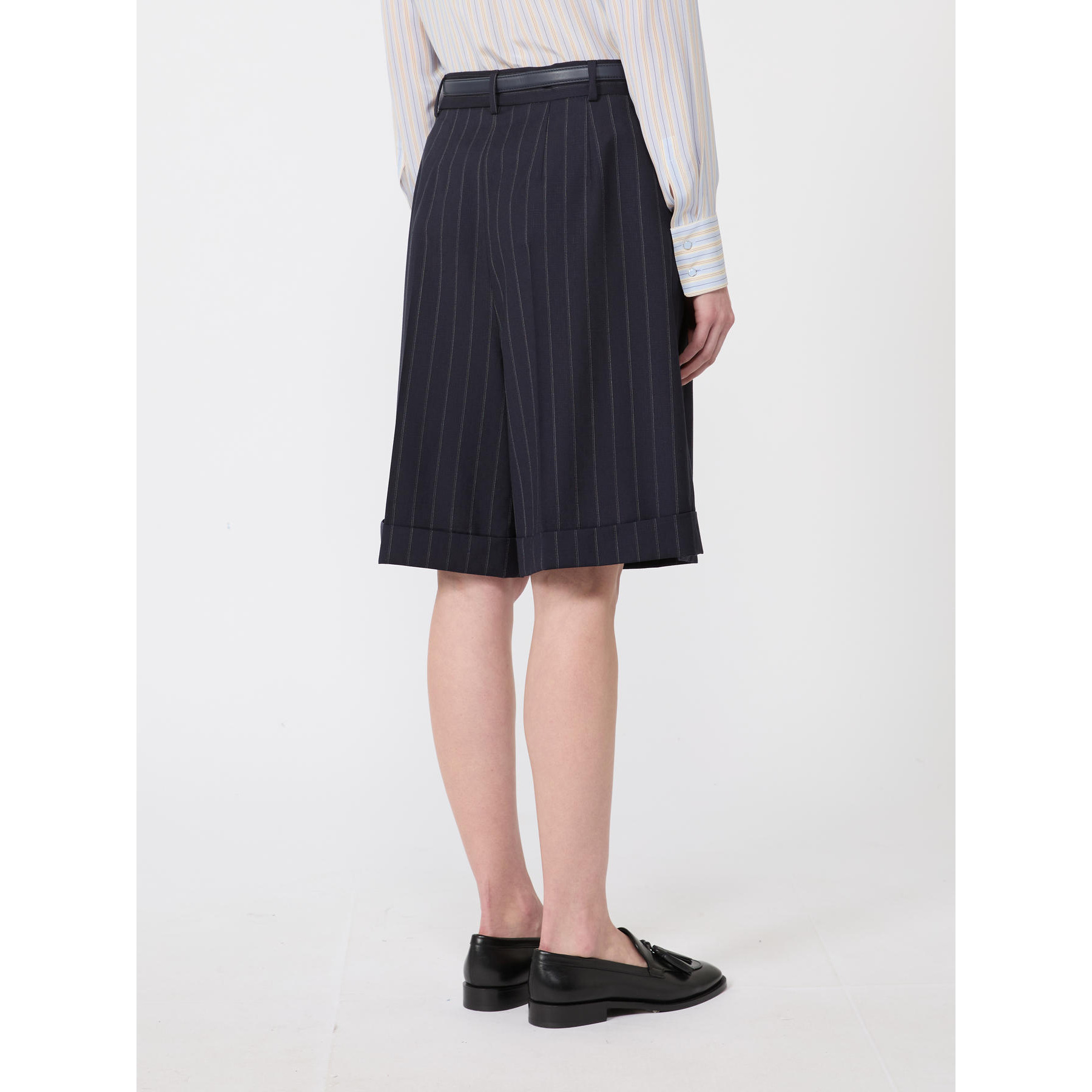 Pantalone bermuda dal taglio contemporaneo e risvolto marcato a fondo gamba.