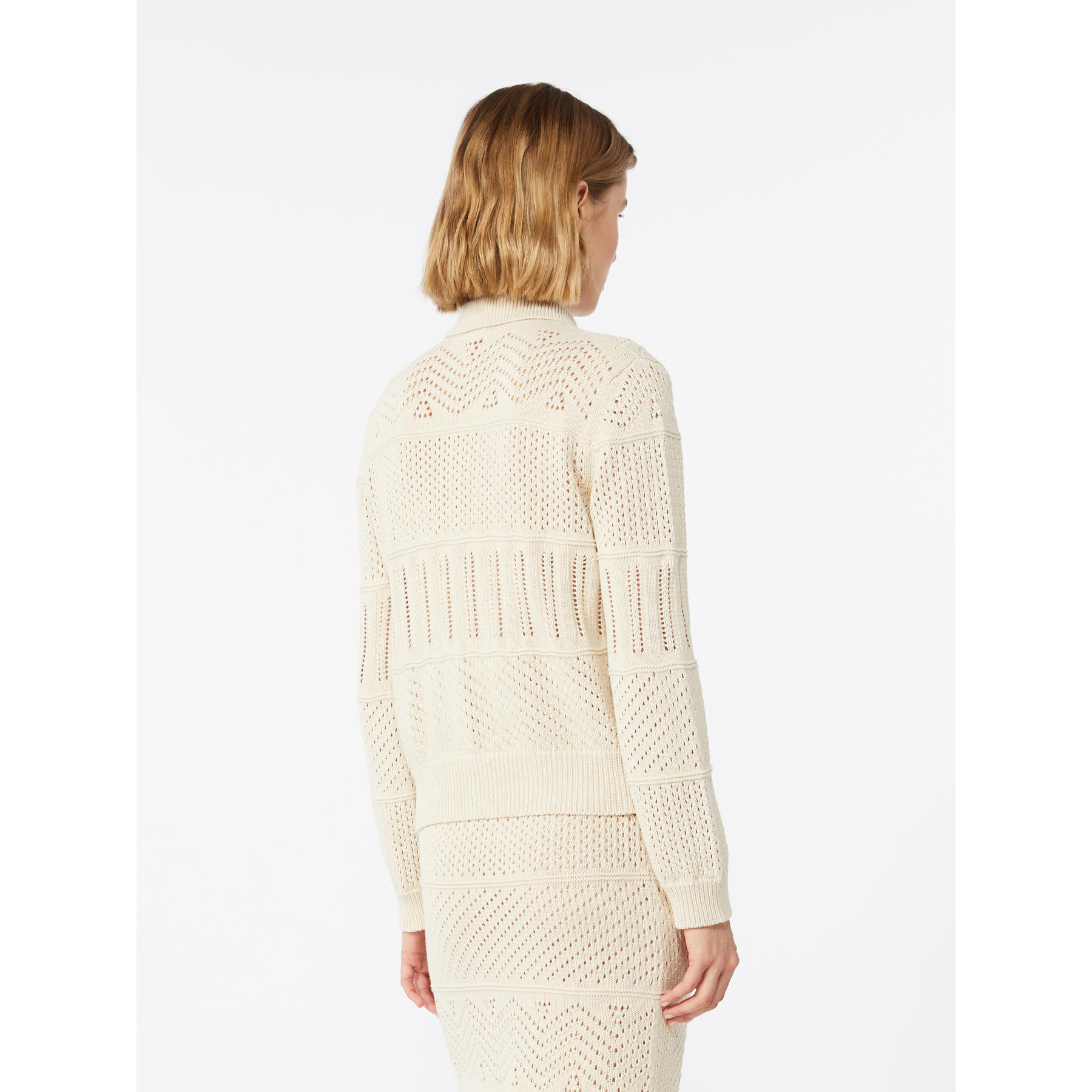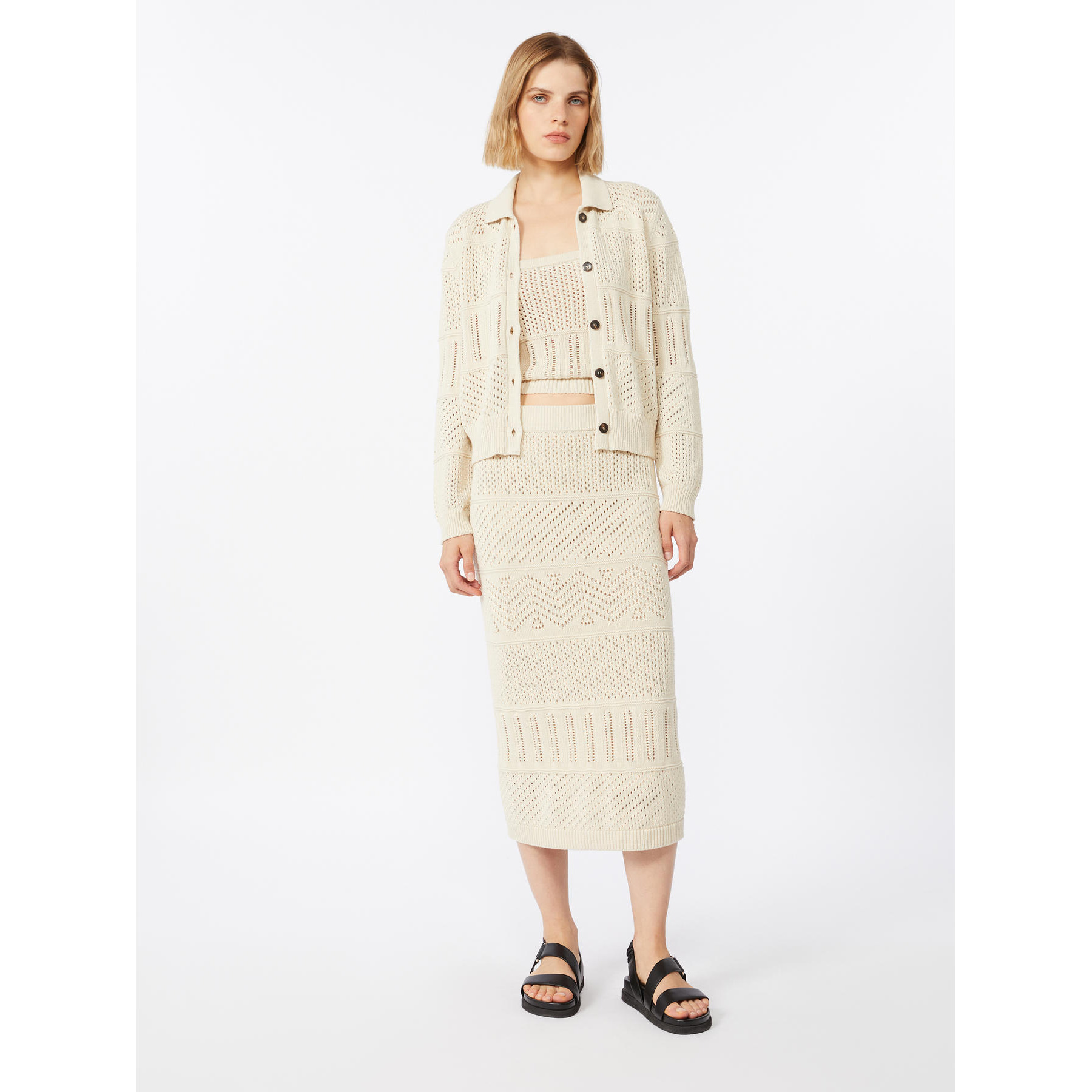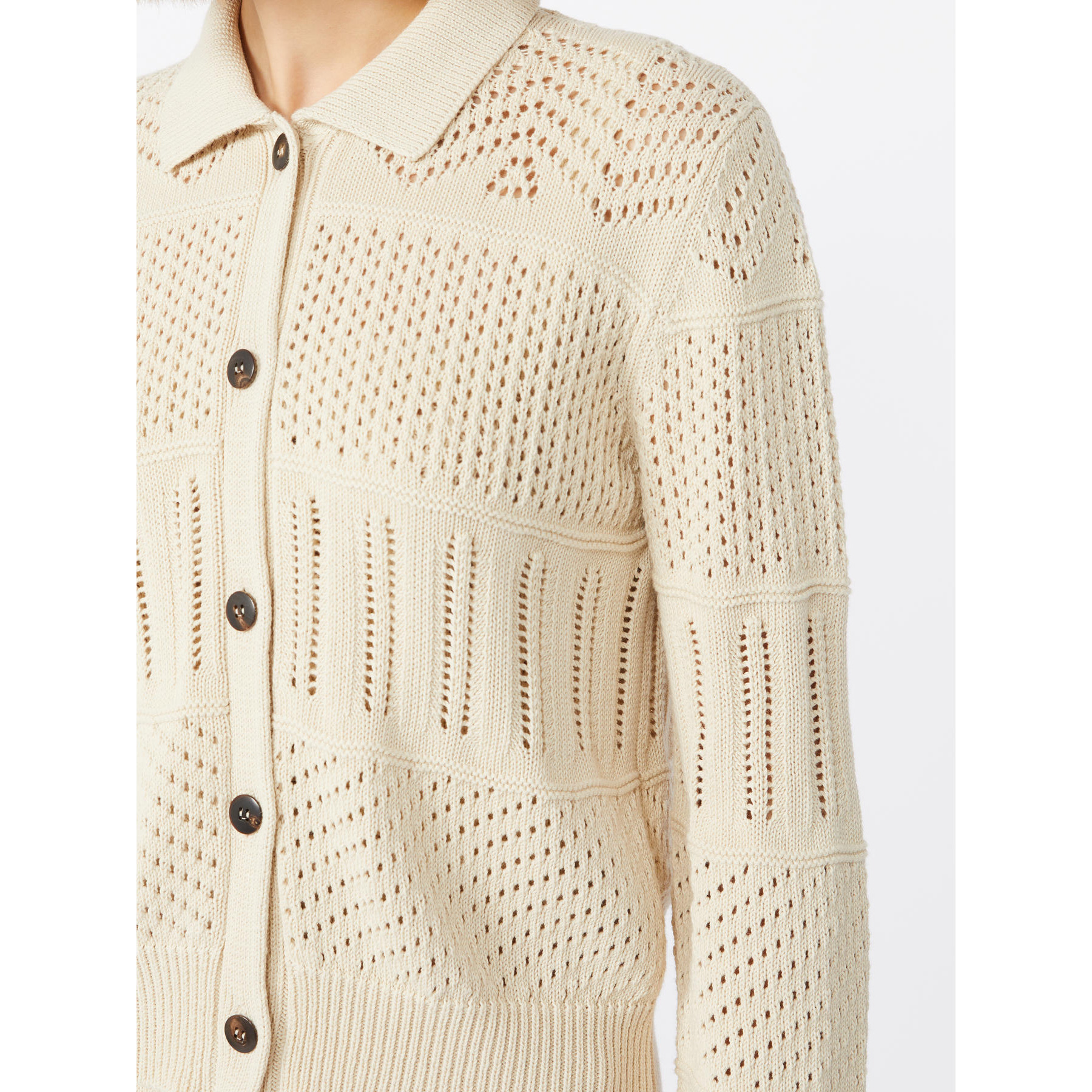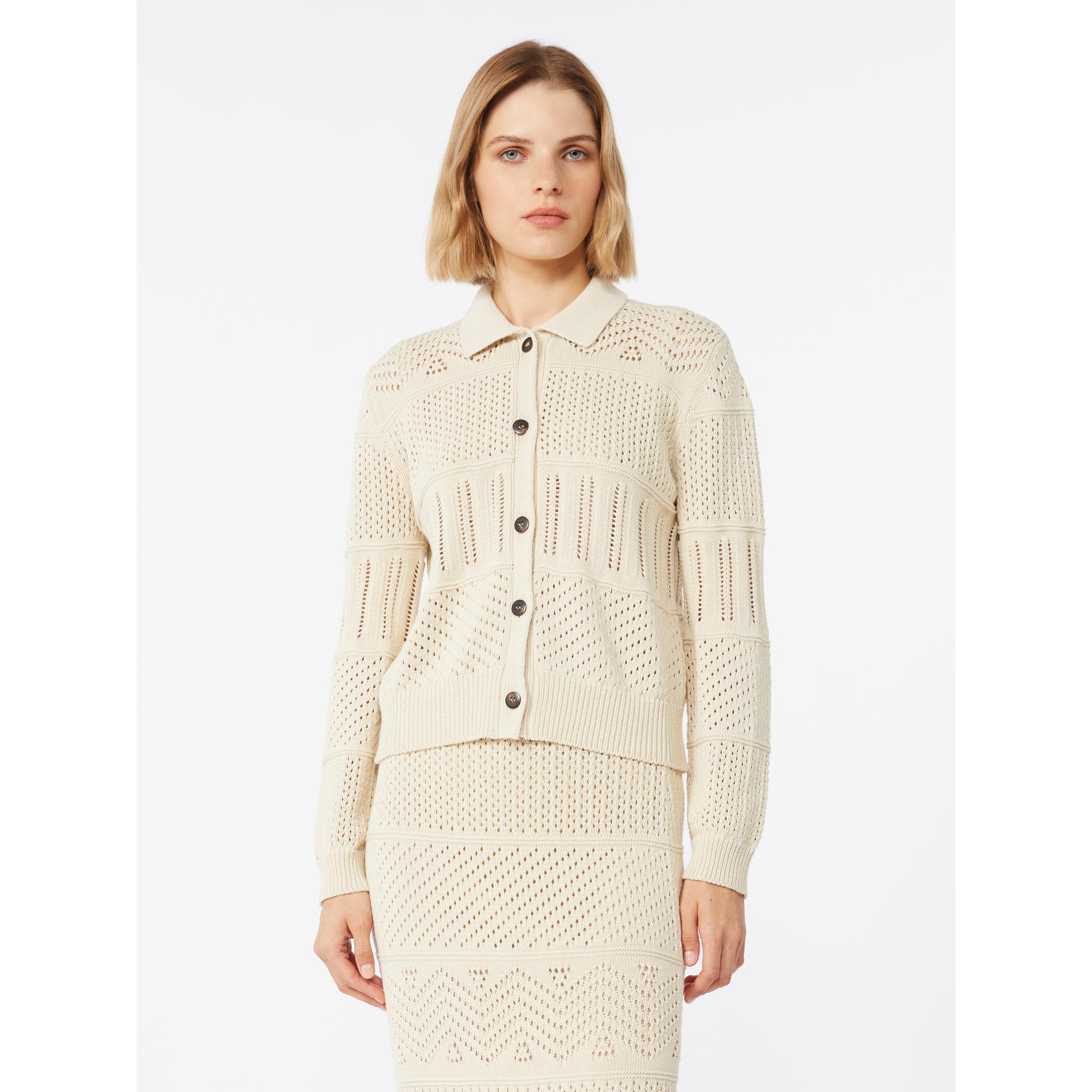 Cardigan a maniche lunghe, lavorato con motivi a punti geometrici traforati.