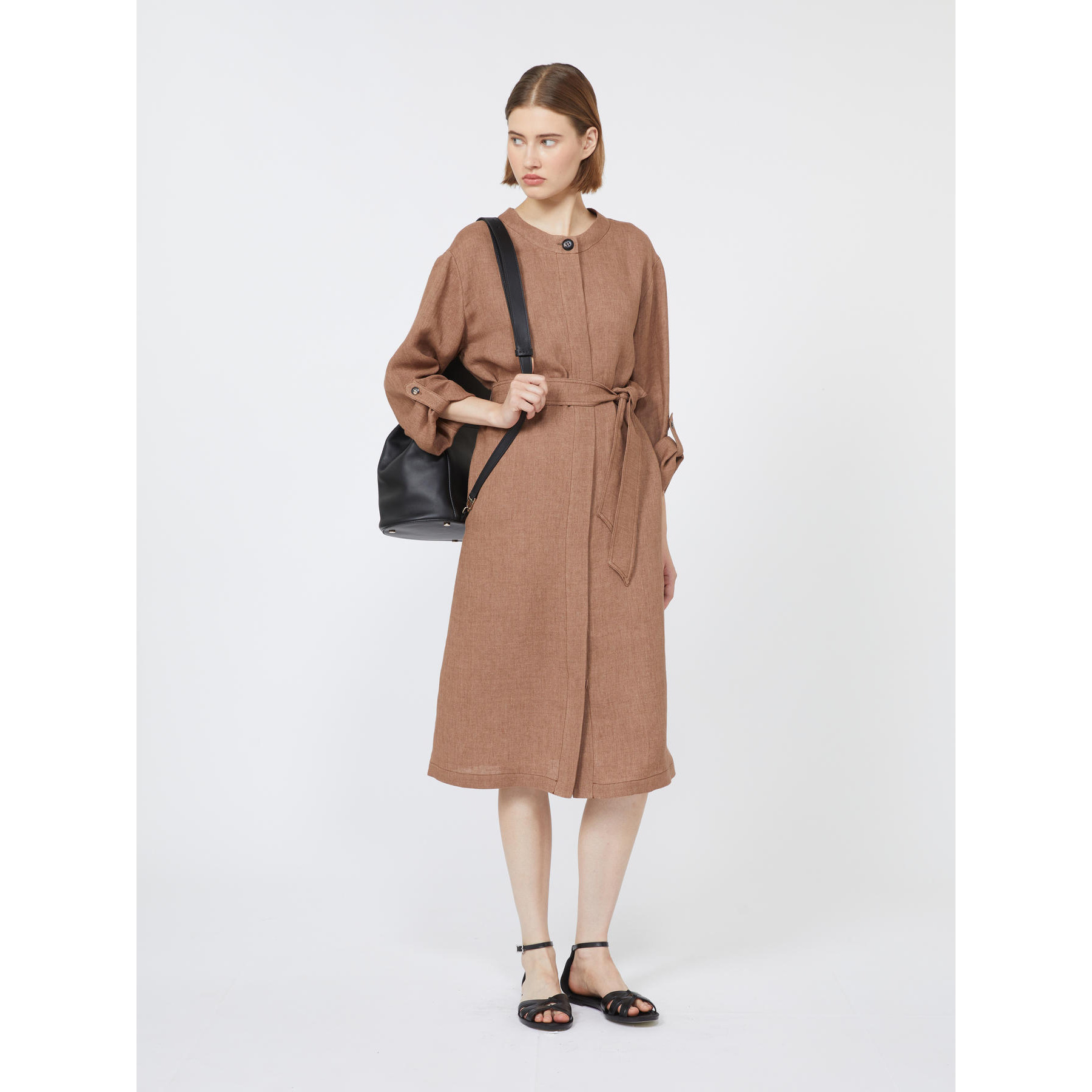 Abito midi con cintura abbinata ad evidenziare la silhouette.