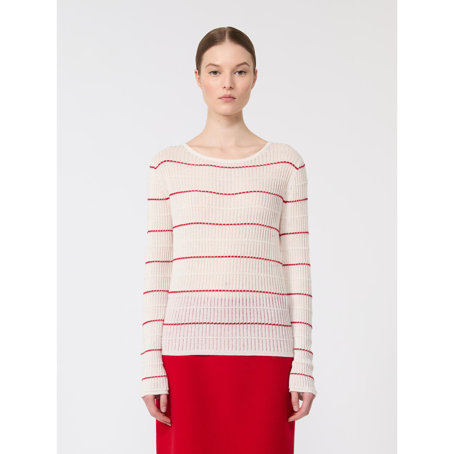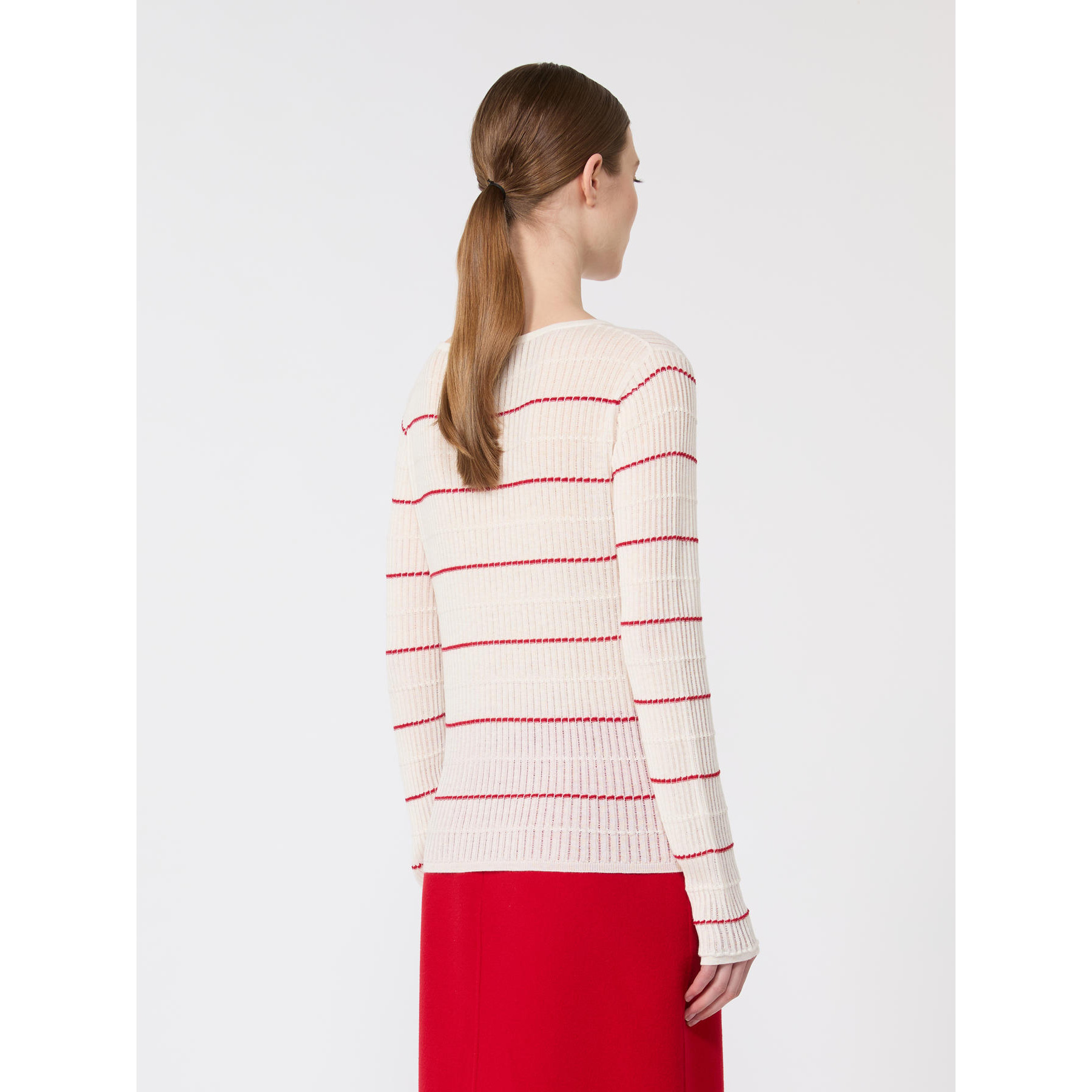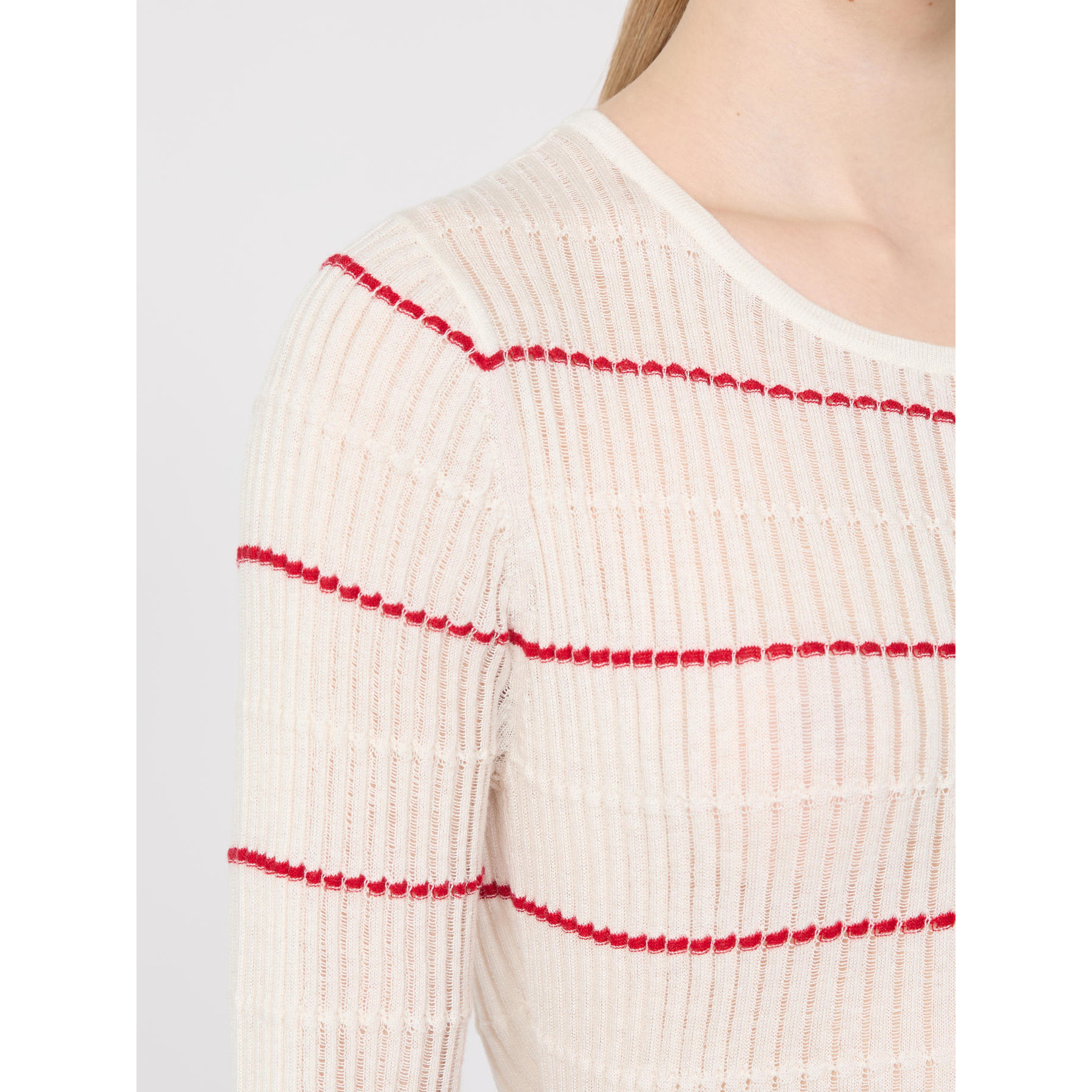 Maglia slim fit lavorata a coste piatte con dettagli à jour. Maglia in filato di lana e seta