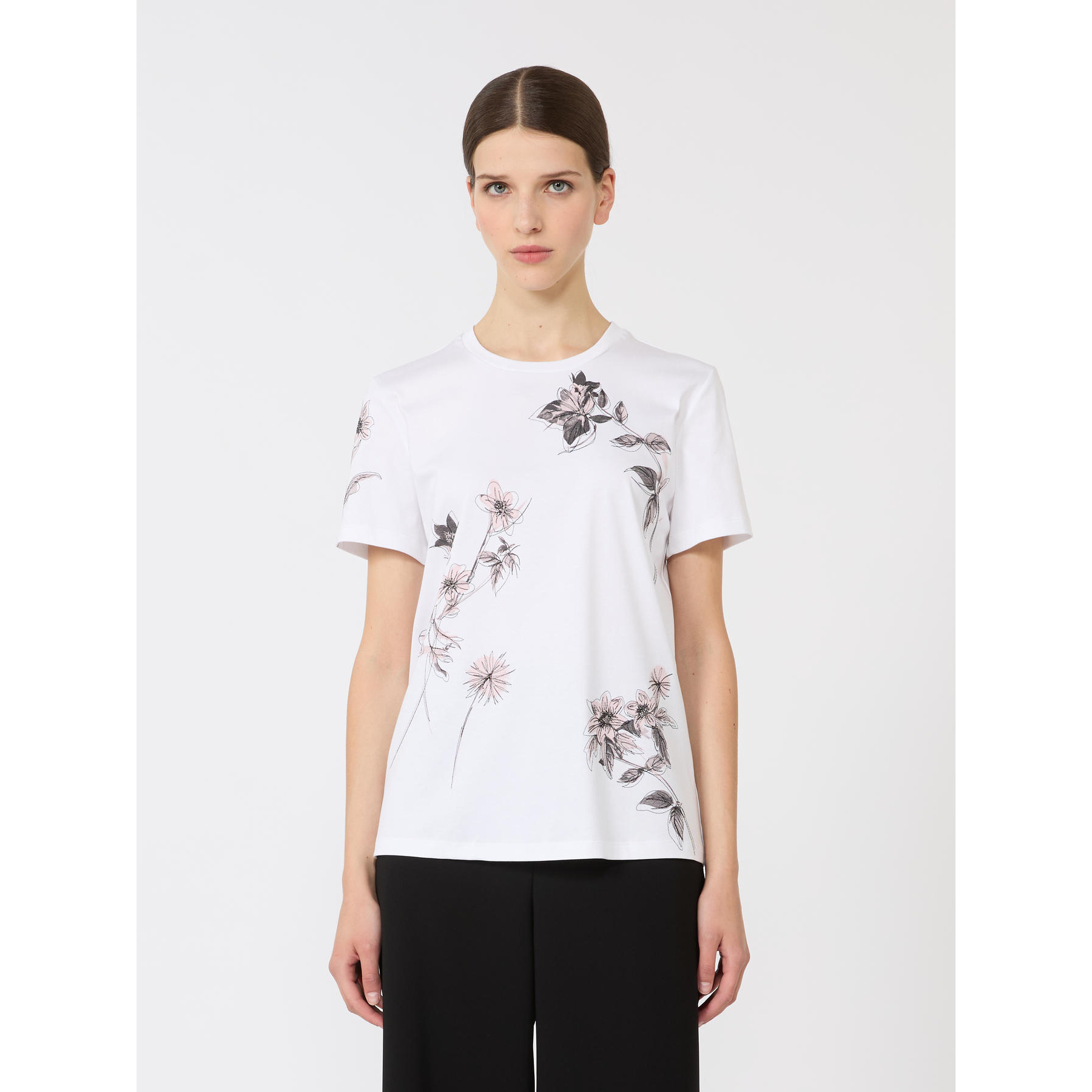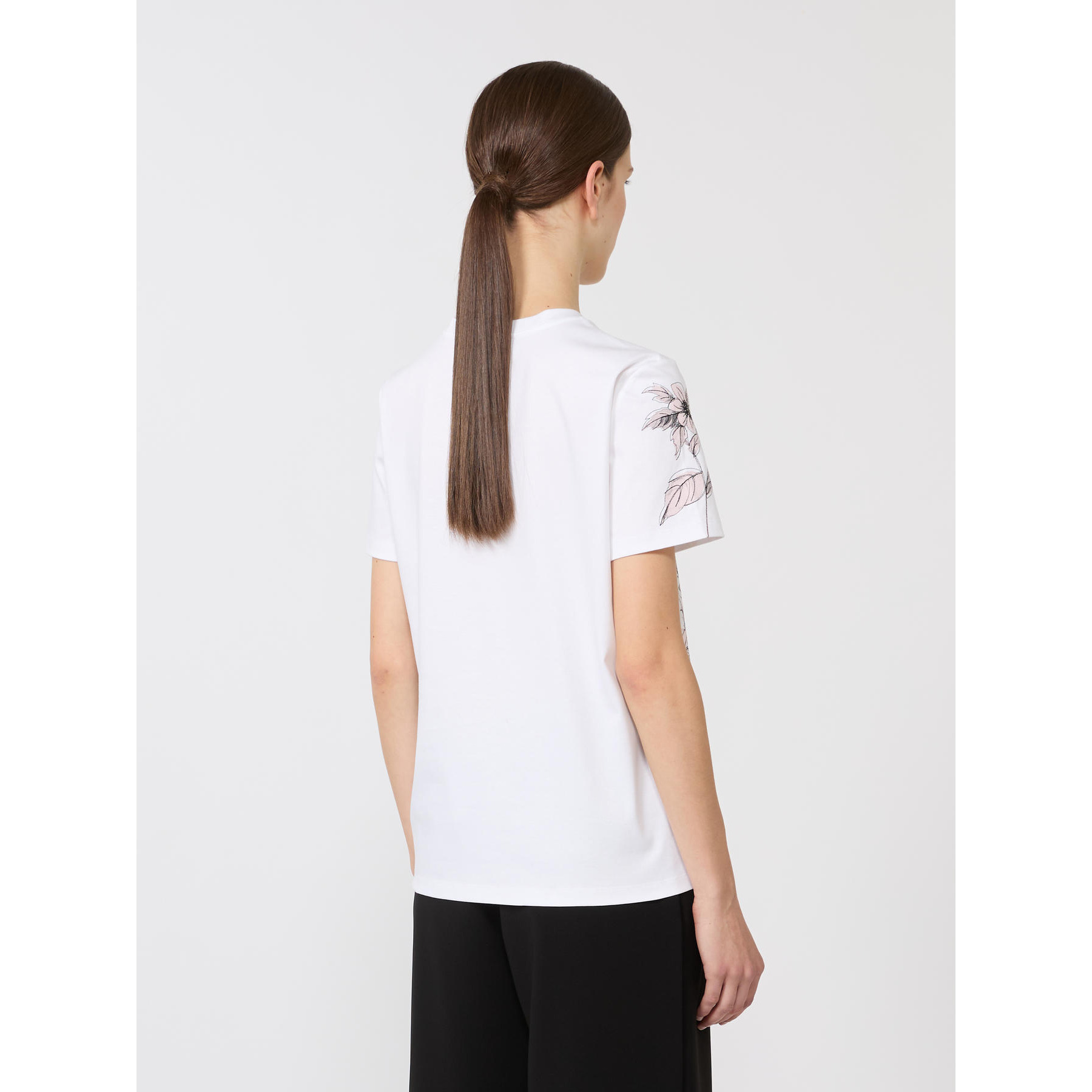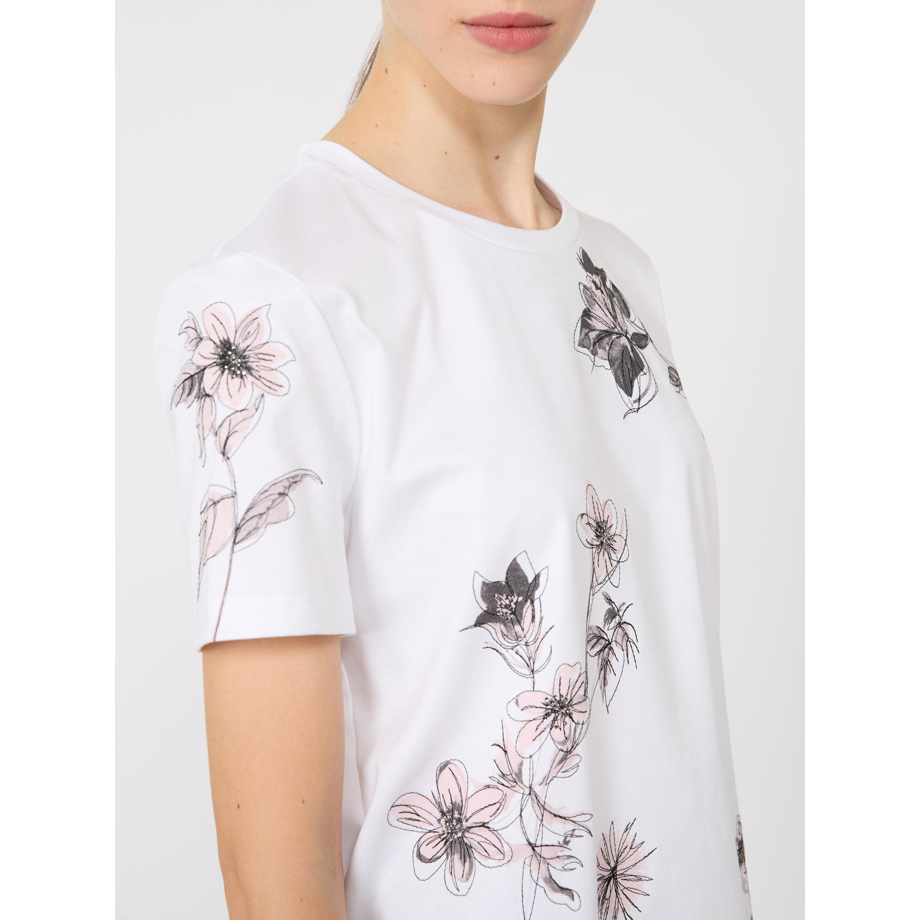 T-shirt basic, decorata con stampa e ricamo sul davanti.T-shirt in jersey interlock di puro cotone