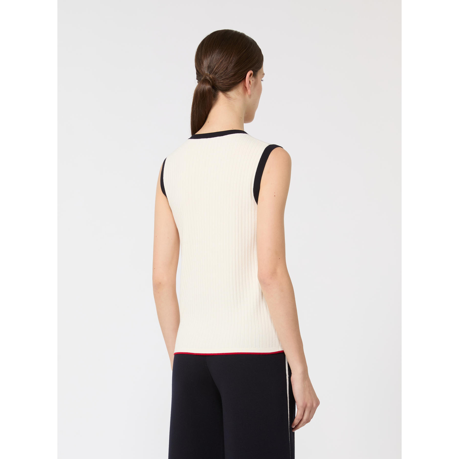 Canotta interamente lavorata a coste piatte.