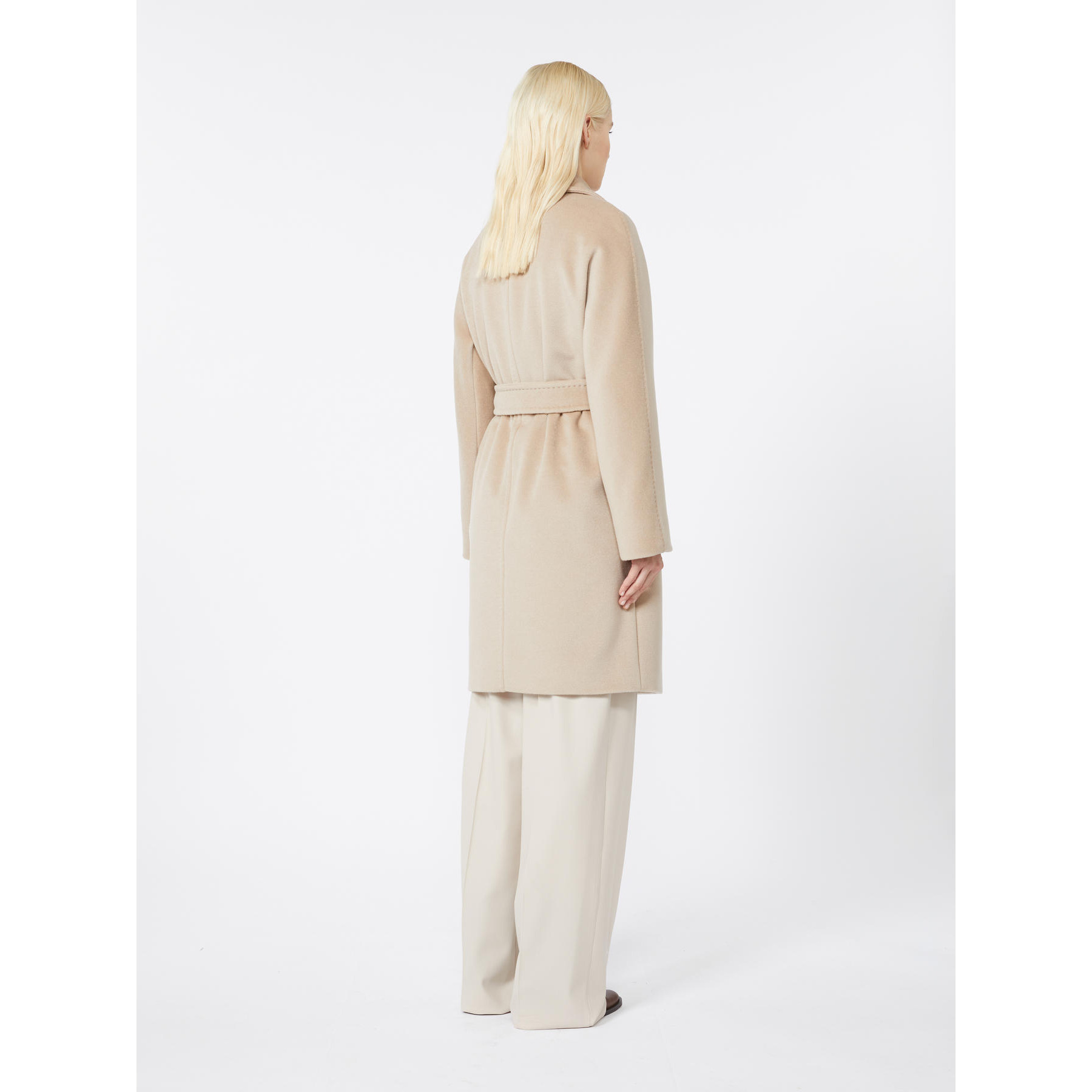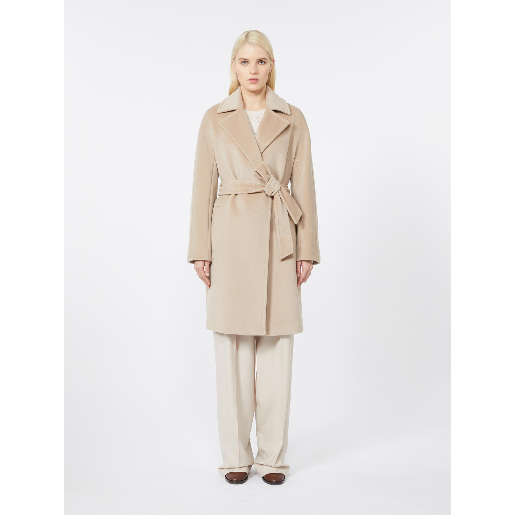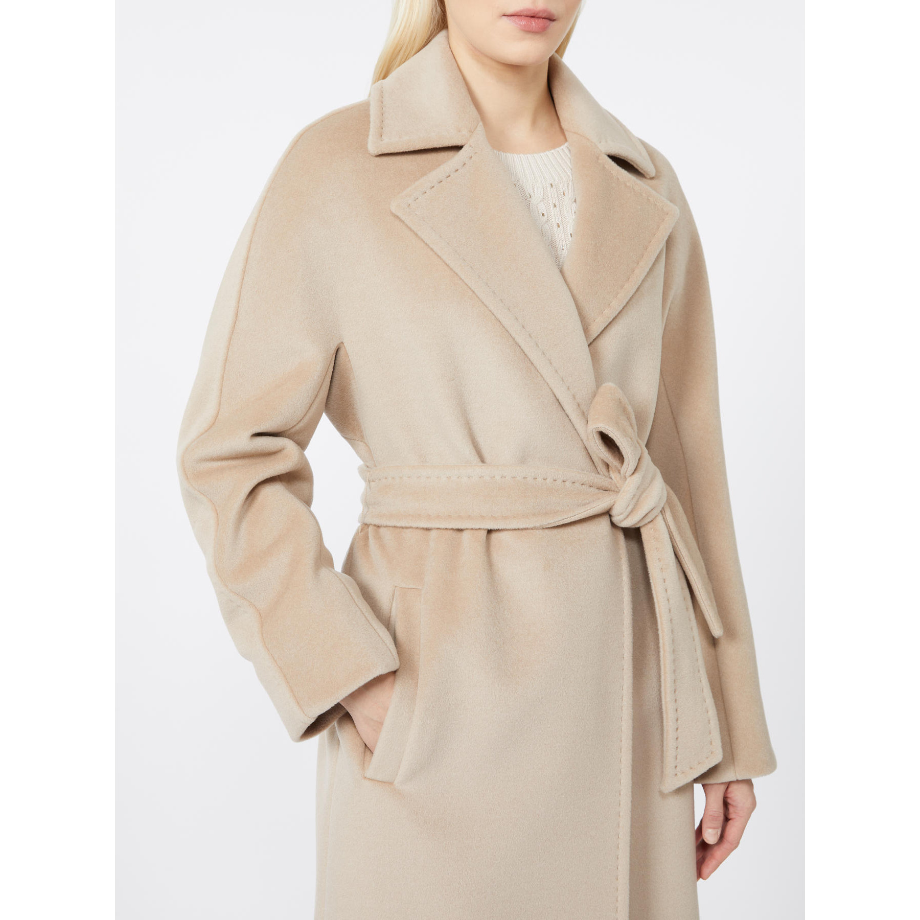 Cappotto midi a vestaglia realizzato in prezioso beaver di lana, con dettagli classici e una costruzione sartoriale che accompagna le linee femminili. Cappotto in beaver di pura lana Linea dritta Collo a rever classico Maniche lunghe a kimono Chiusura con cintura abbinata in vita Tasche a filetto sui fianchi e puntino sartoriale