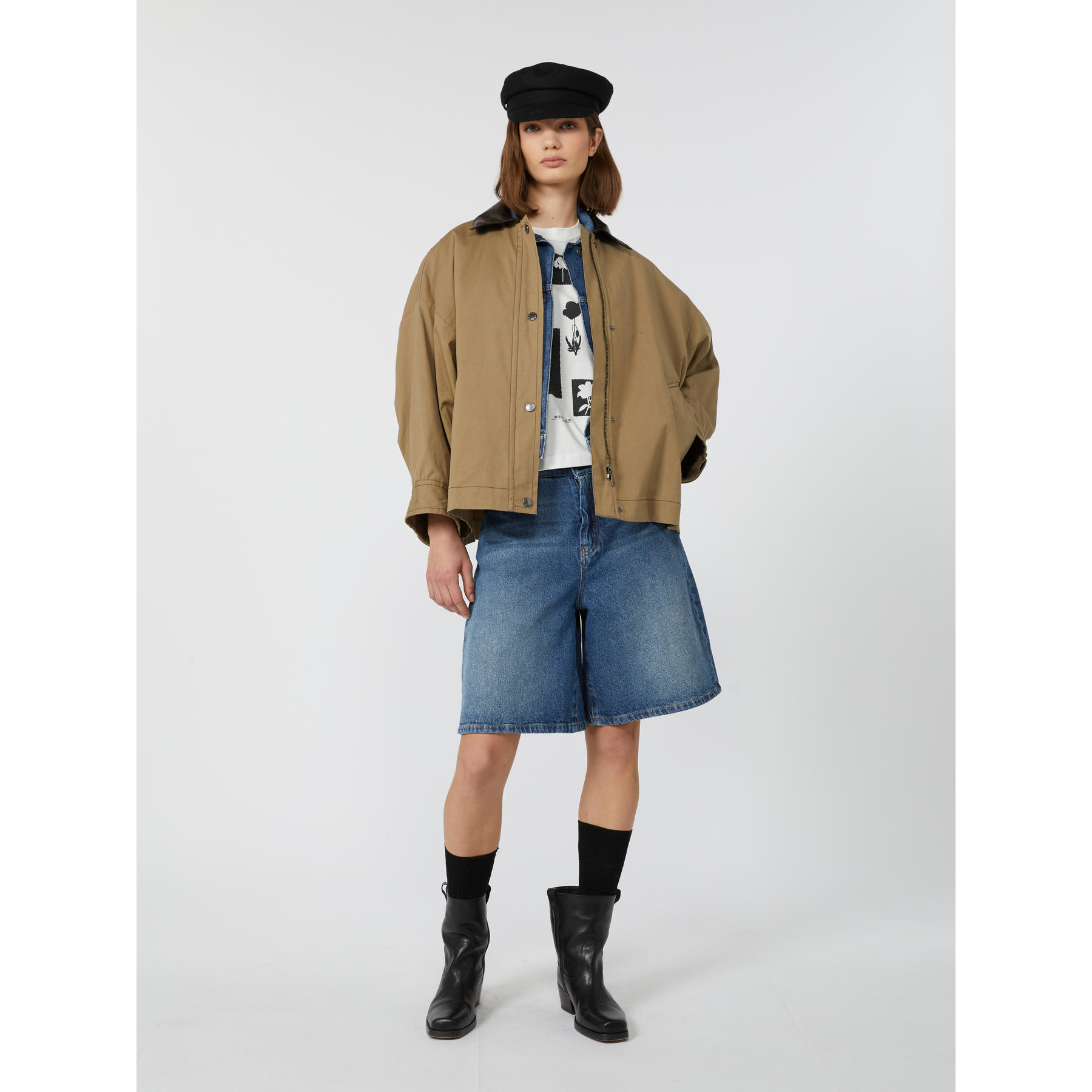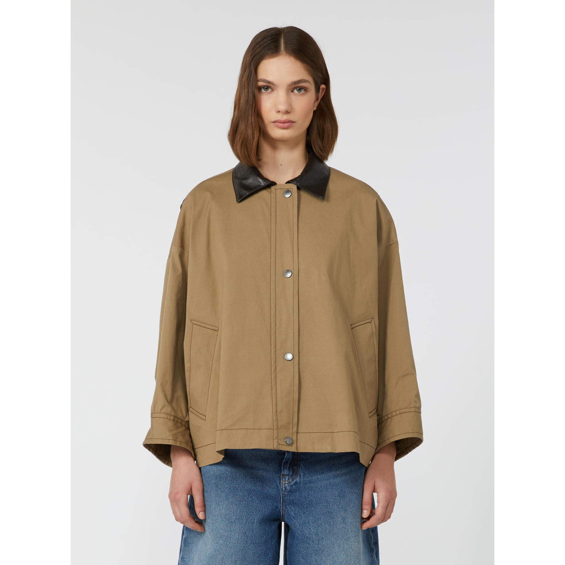 Giacca monopetto, il volume ampio è definito da pieghe sul retro e sui gomiti.