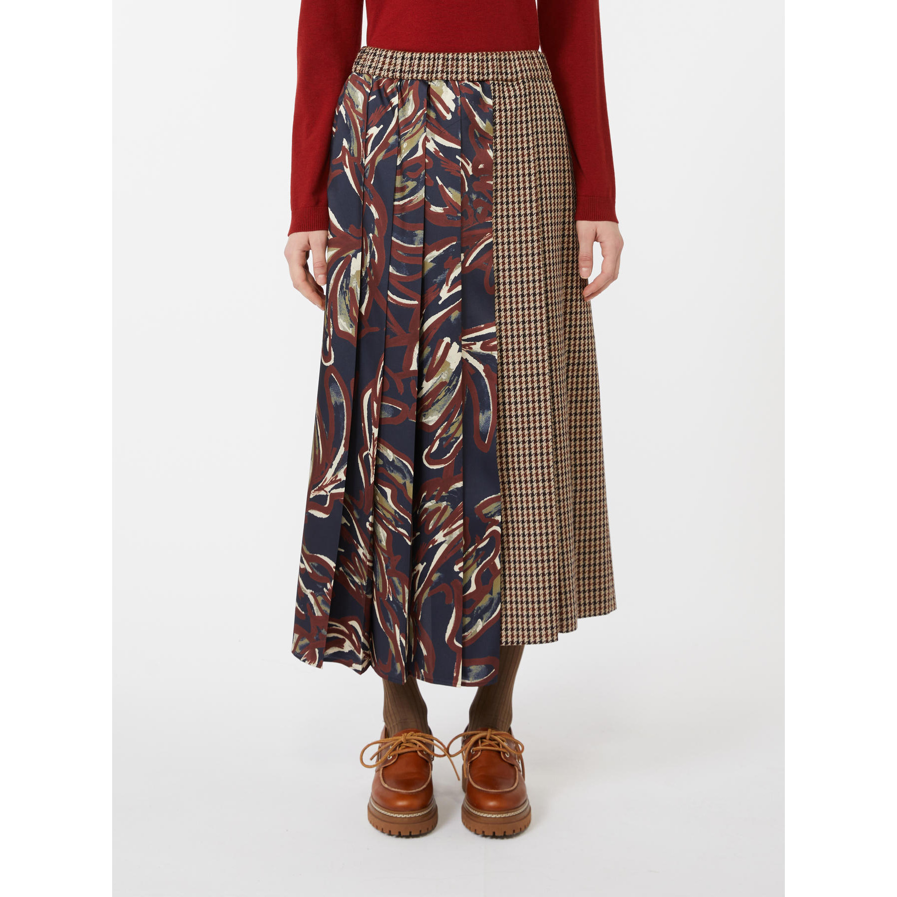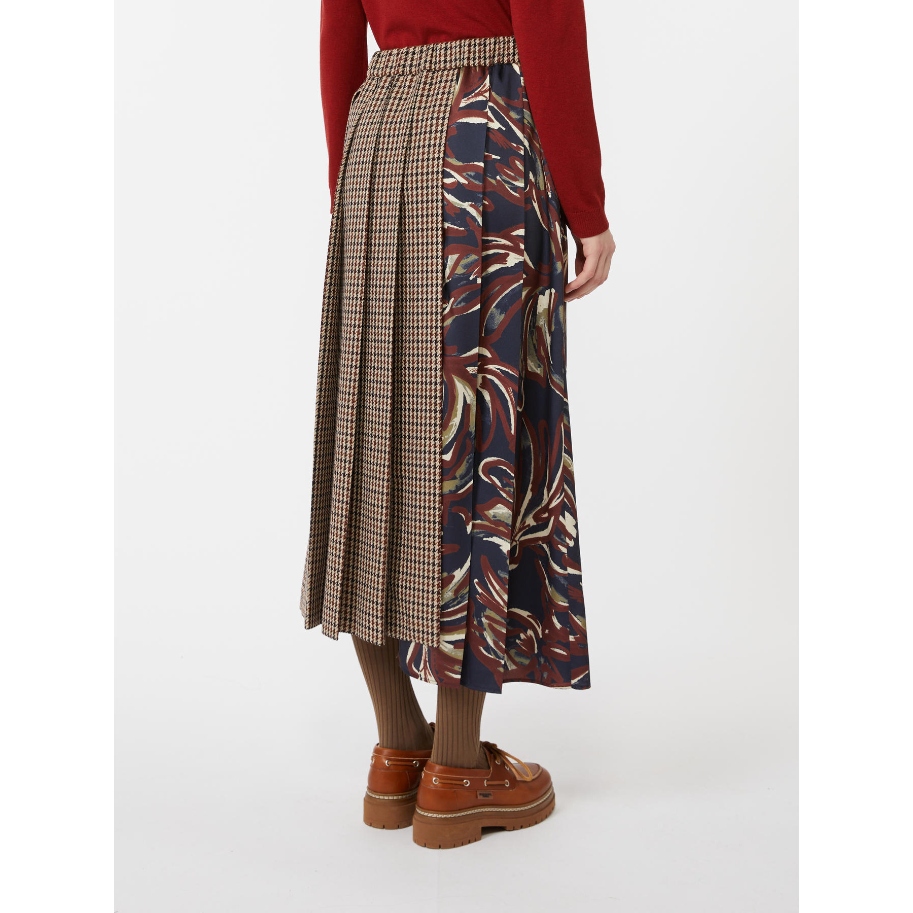 Gonna midi caratterizzata un gioco di pieghe plissé e pieghe montate che donando movimento.