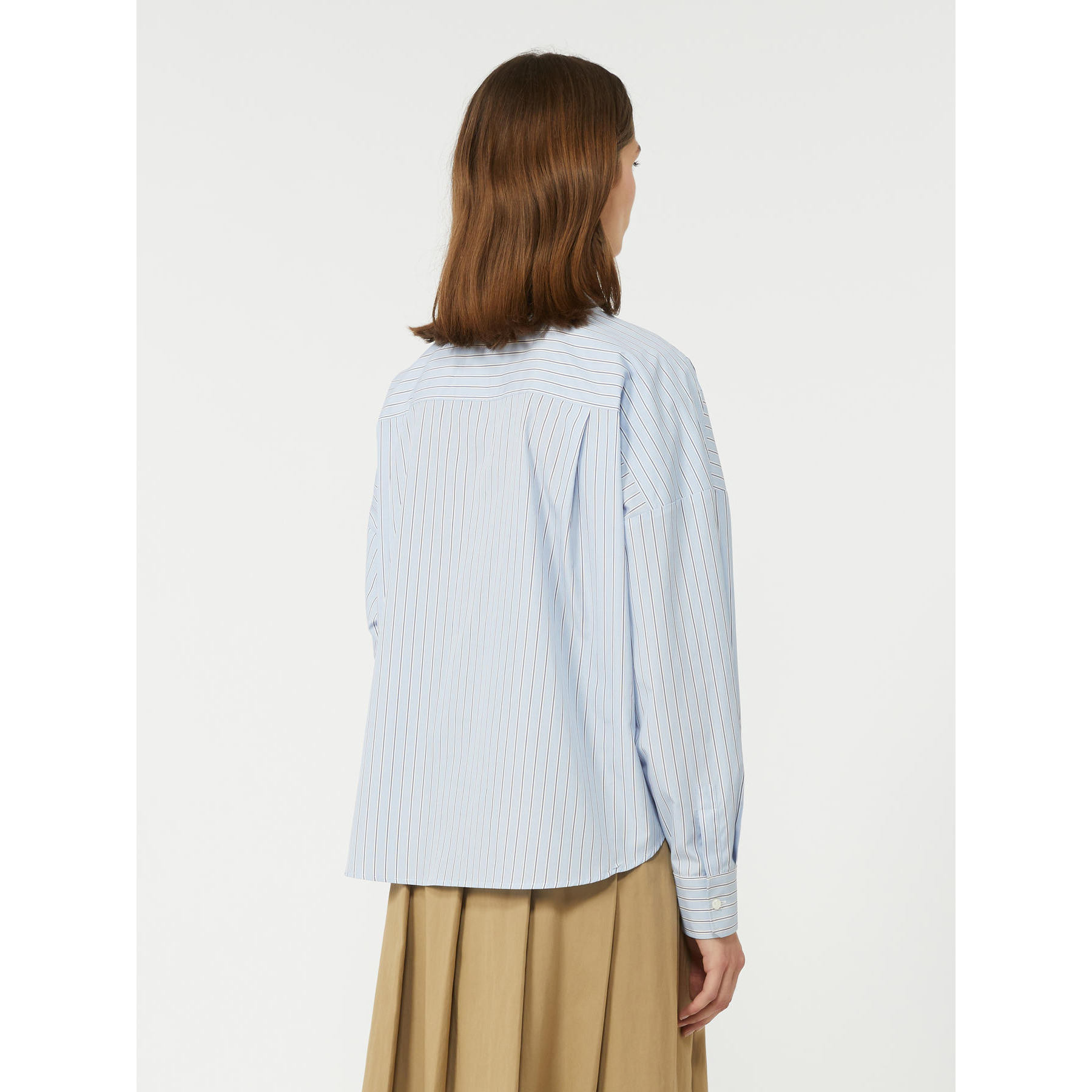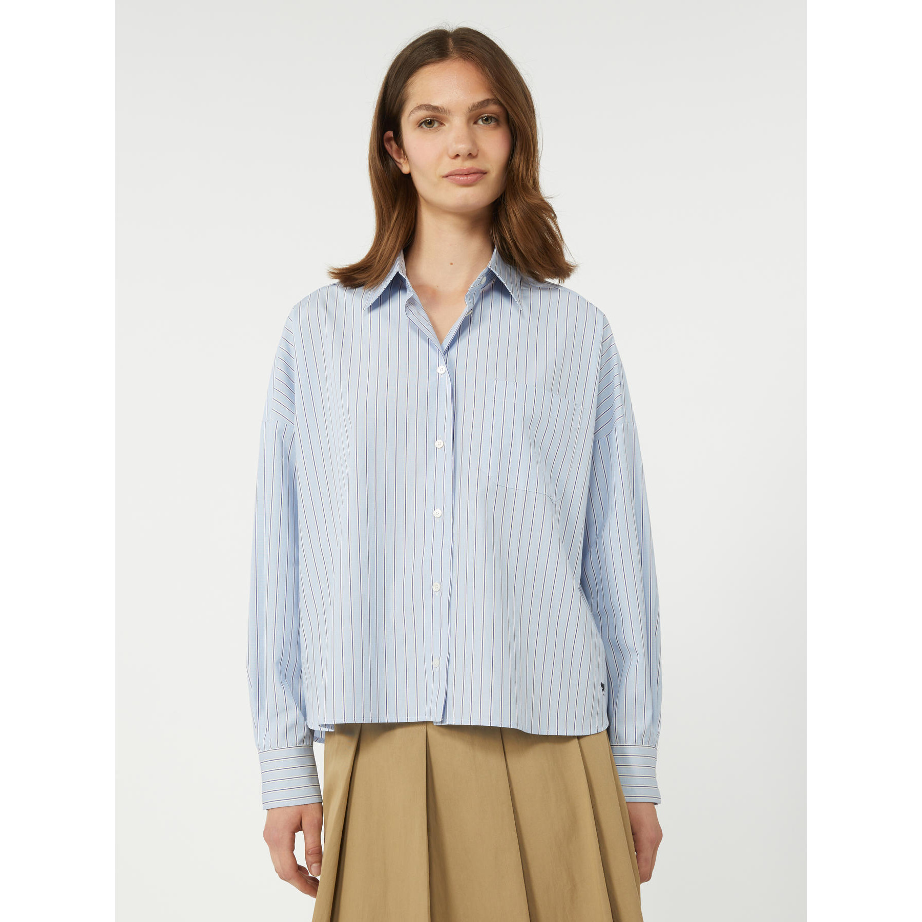Camicia oversize con piccolo logo a farfalla ricamato al fondo davanti.