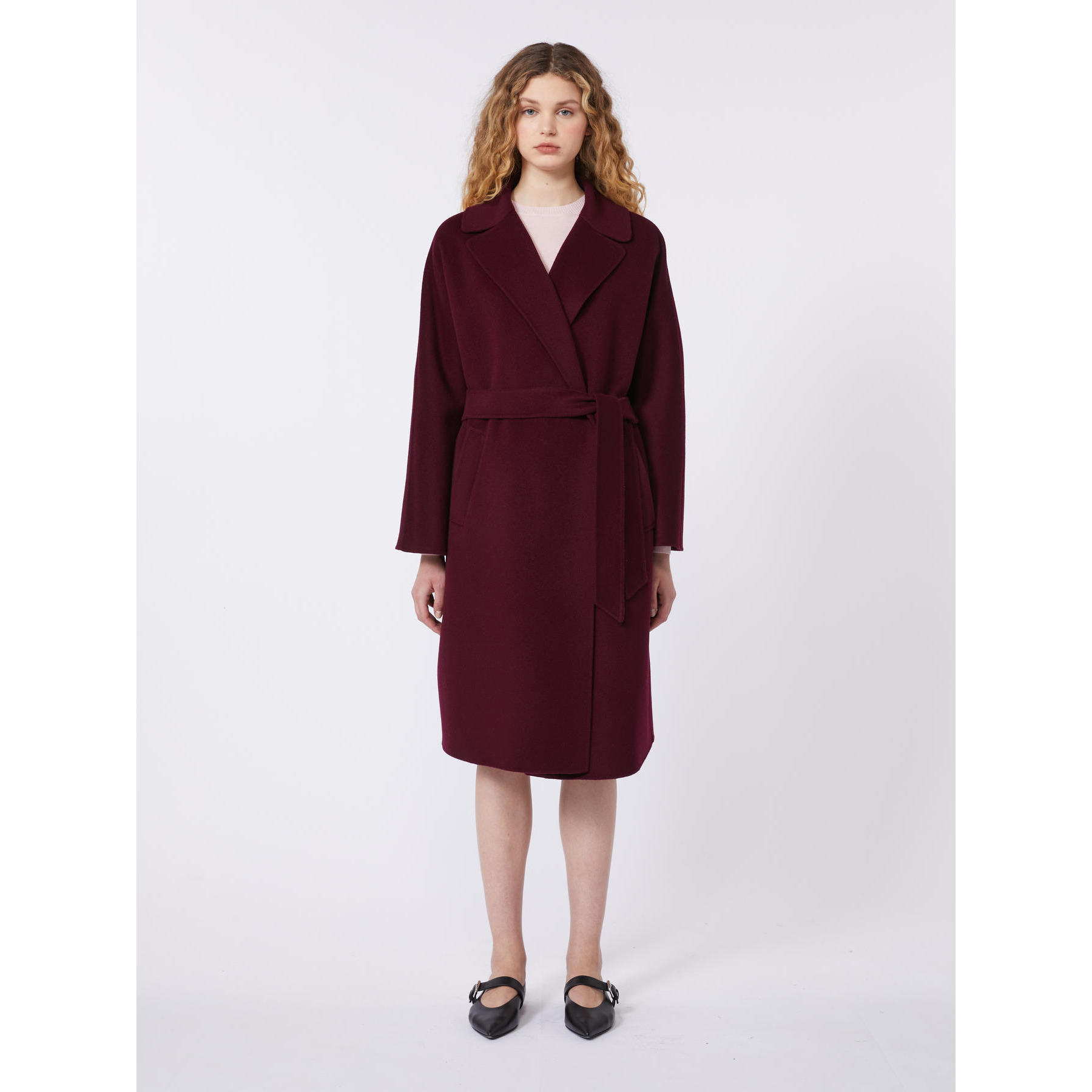 Cappotto midi dalla linea a vestaglia.
