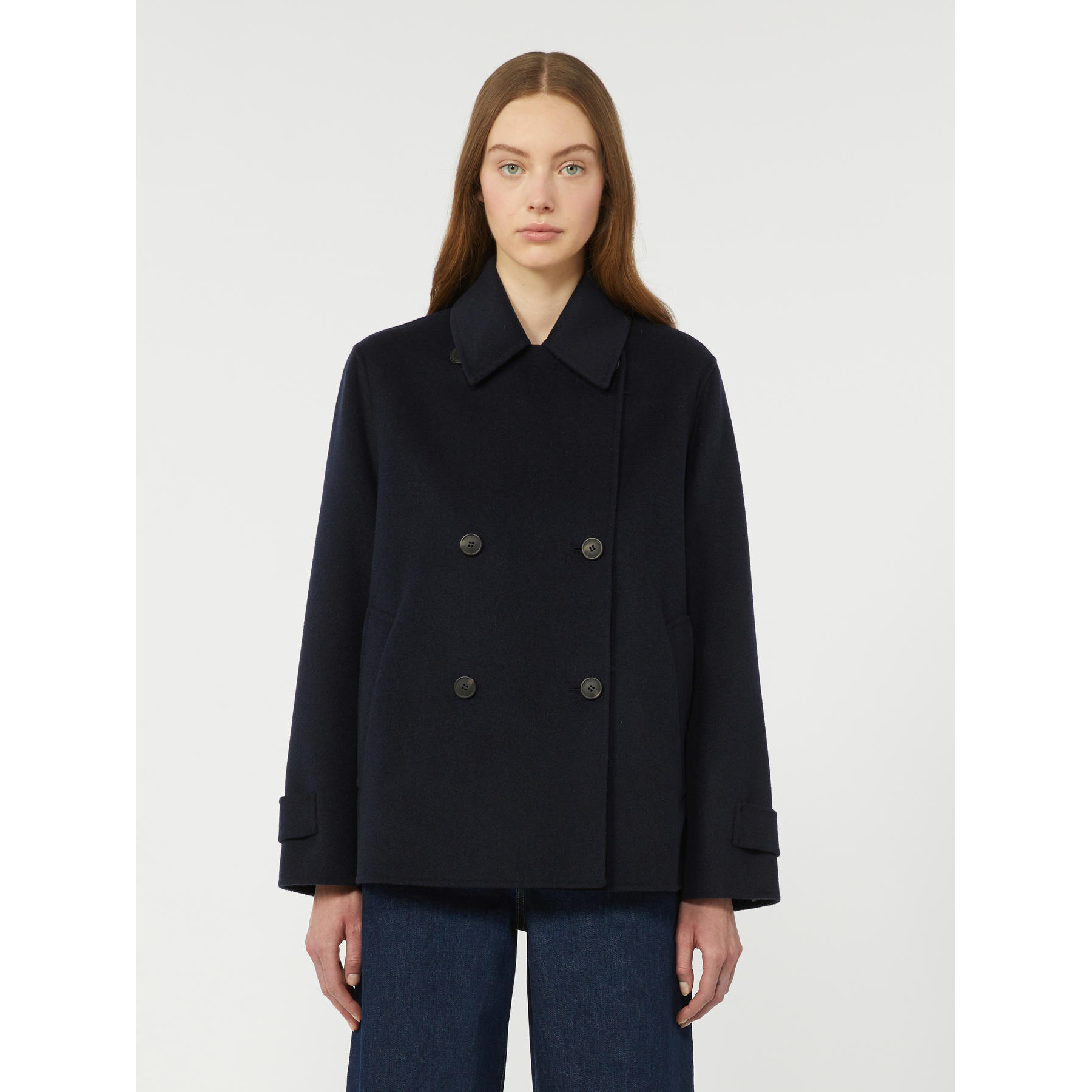 Caban in tessuto doppio di mista lana cucito a mano