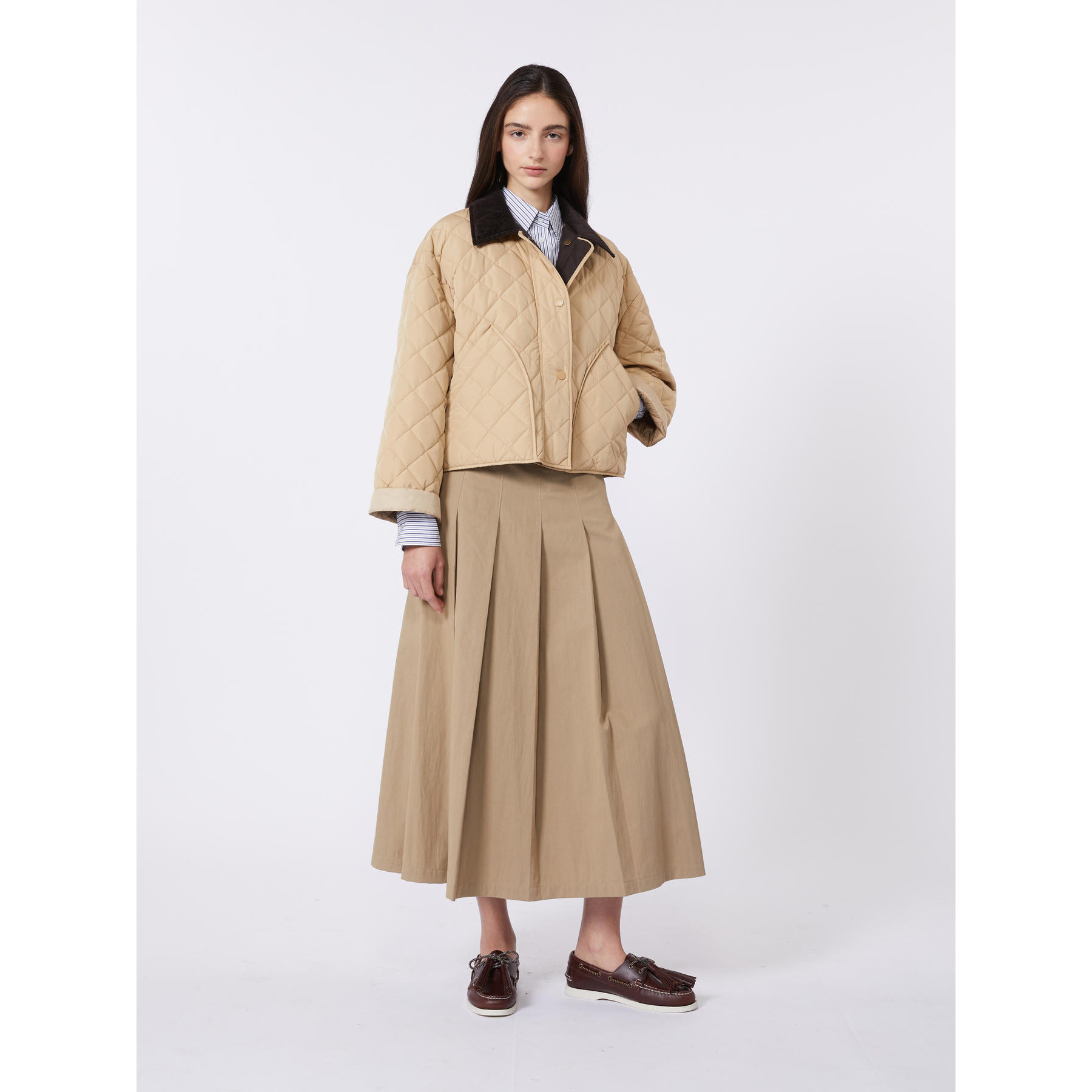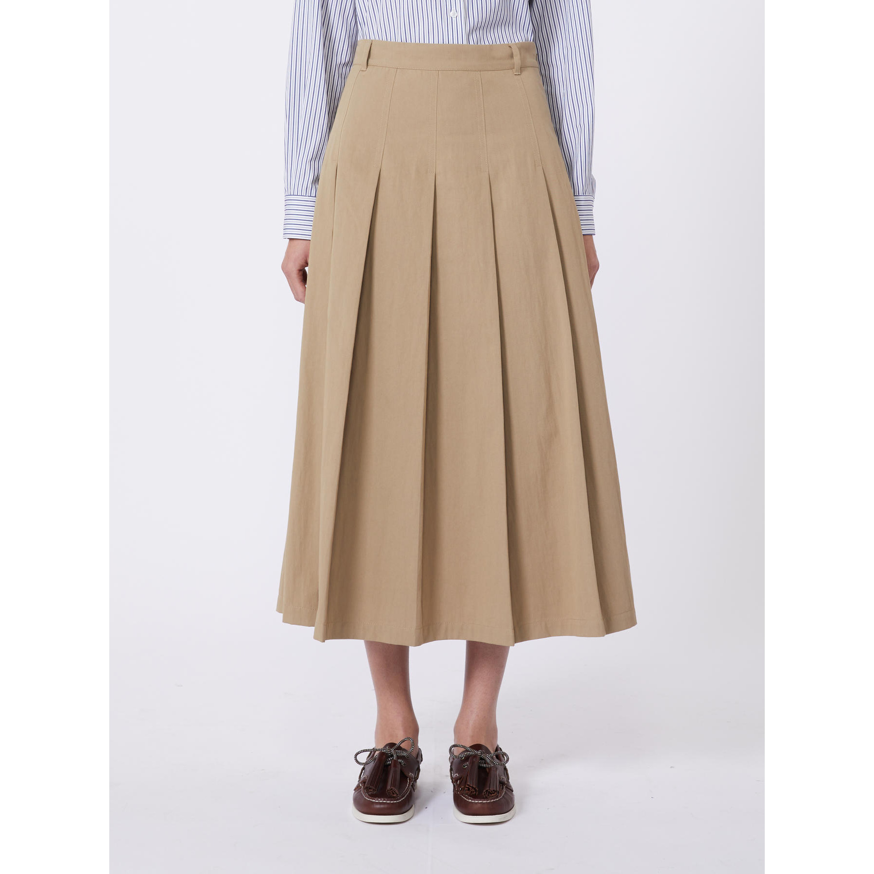 Gonna midi A-line costruita con pannelli a pieghe davanti e sul retro.